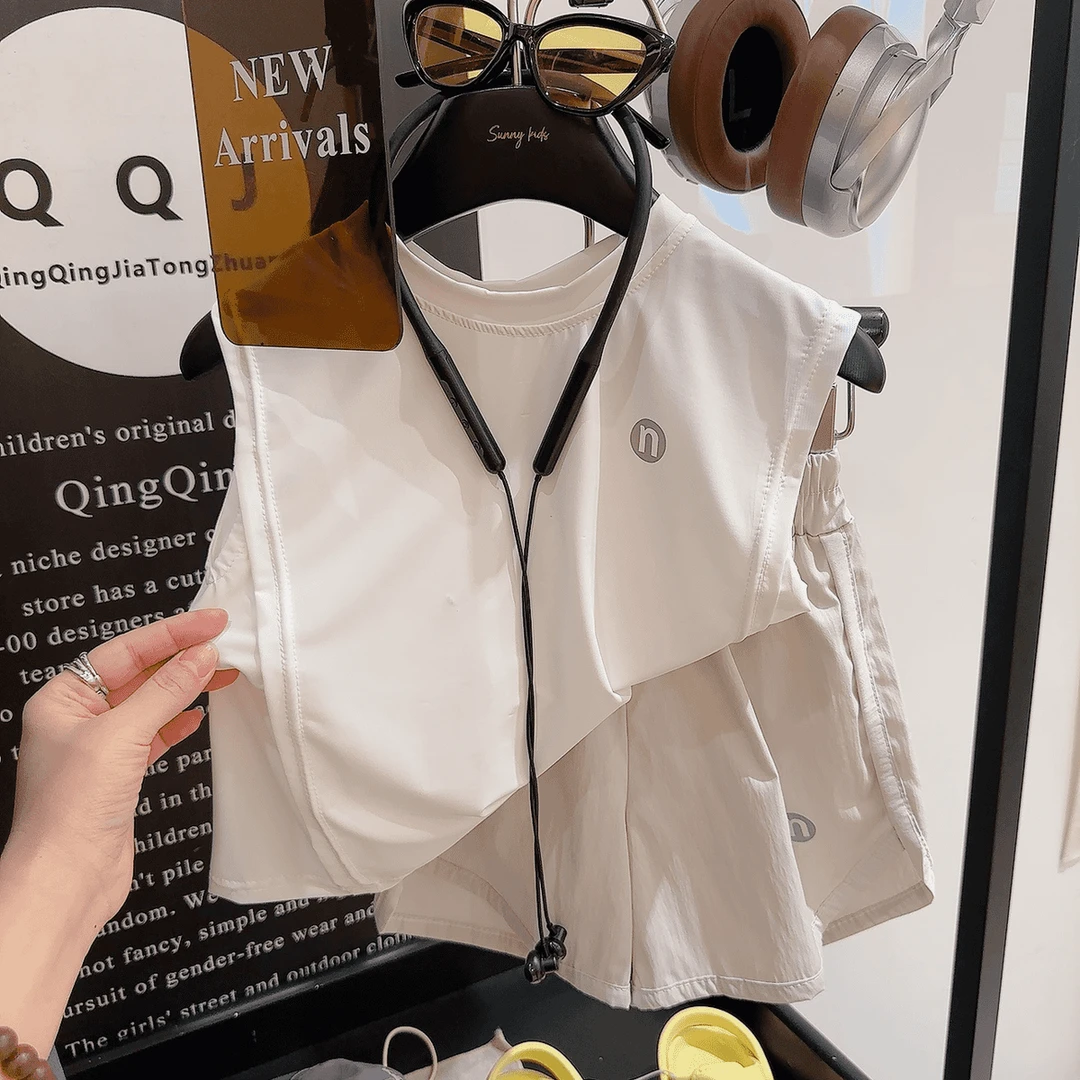 淘宝京腾百货,2025夏季新款儿童韩版爆款冰感防晒速干休闲宽松无袖背心套装HQ