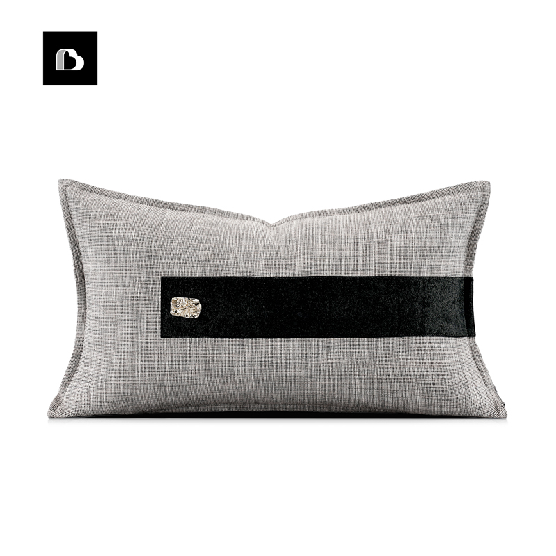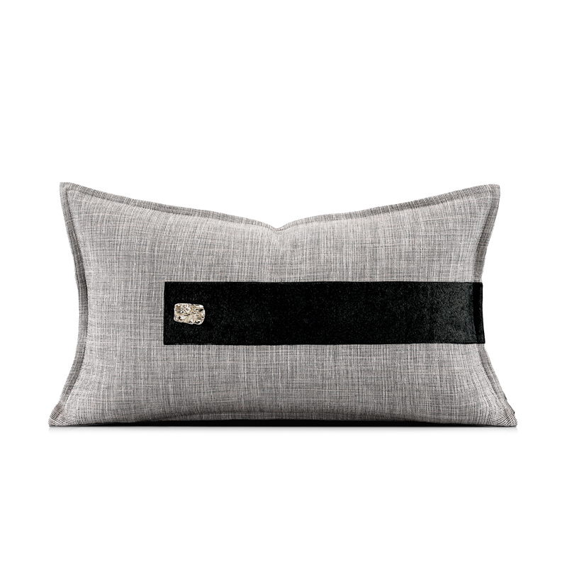 天猫柏洛斯家居旗舰店,灰色系棉麻黑色马毛皮草沙发腰枕,马毛拼接 顺滑高级