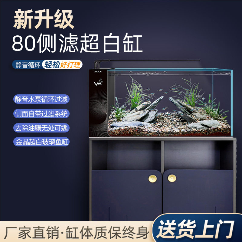 天猫江森水族旗舰店,客厅桌面超白玻璃生态缸南美风,新款侧滤80缸 南美风造景 超白玻璃 溪流缸