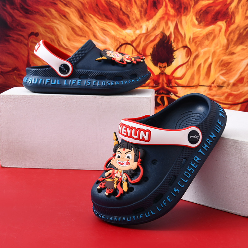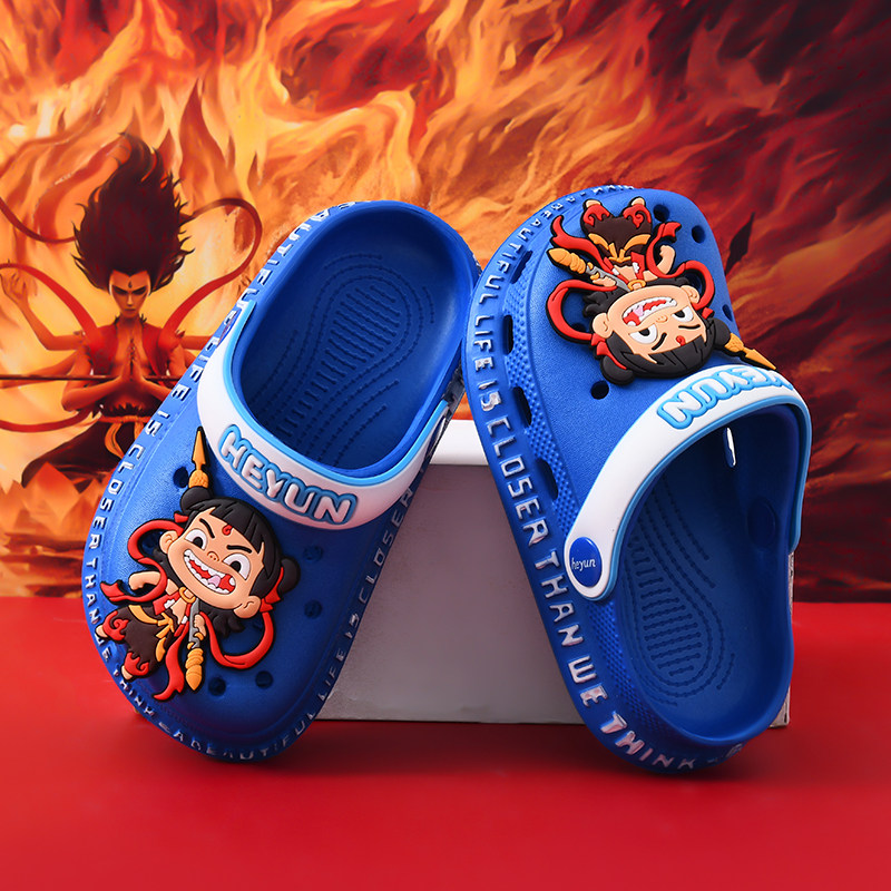 儿童洞洞鞋夏季宝宝卡通哪吒男童凉拖鞋防滑男孩沙滩鞋外穿中大童
