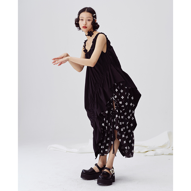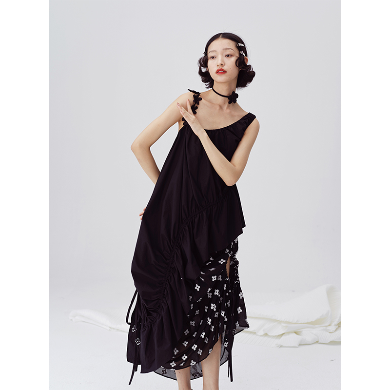 淘宝DIDDI MODA,diddi原创设计黑色花朵肩带公主裙