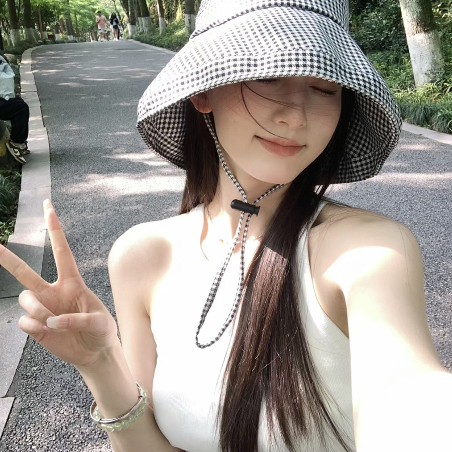 淘宝辛丛家居生活馆,千鸟格防晒渔夫帽女夏季大檐
