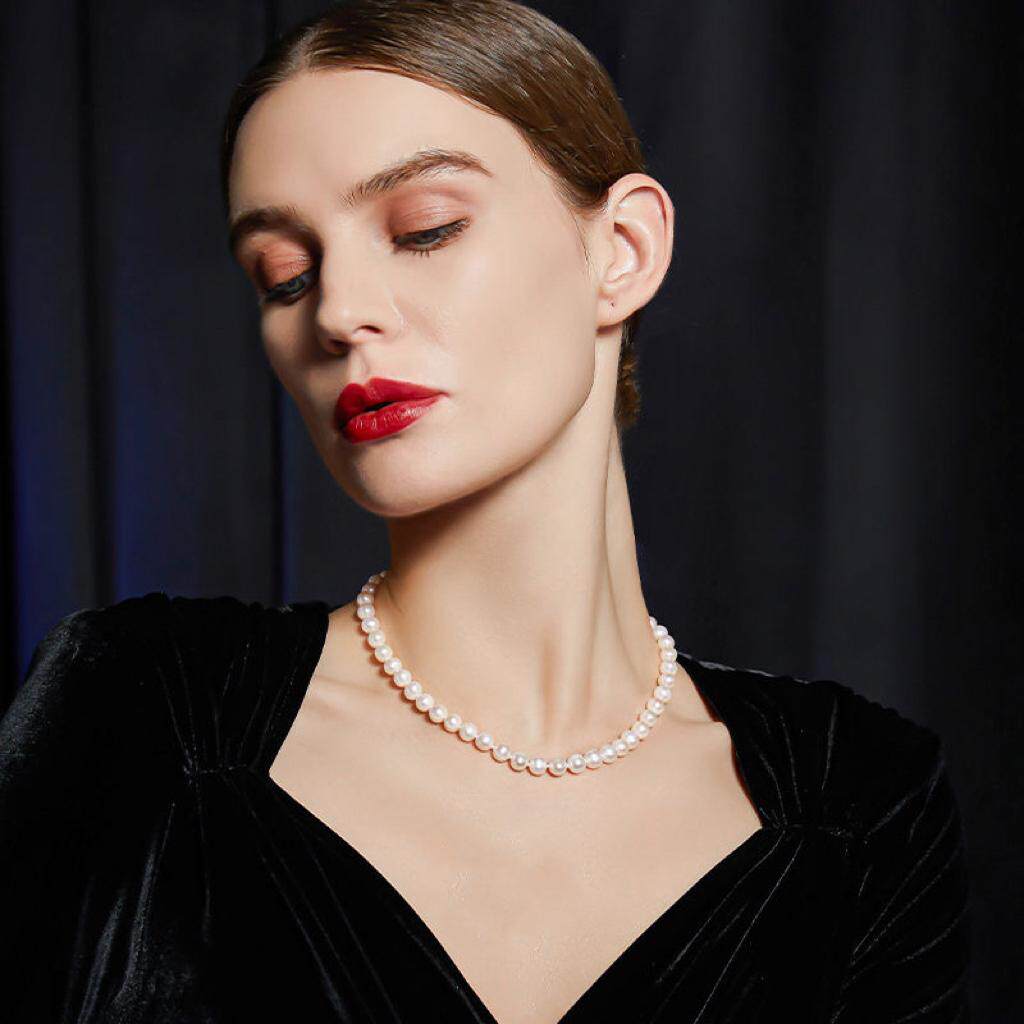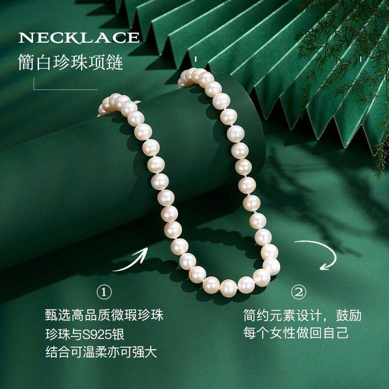 天猫淘工厂美妆直营,天然淡水无核珍珠项链近圆强光S925银微瑕颈链气质女高级节日礼物