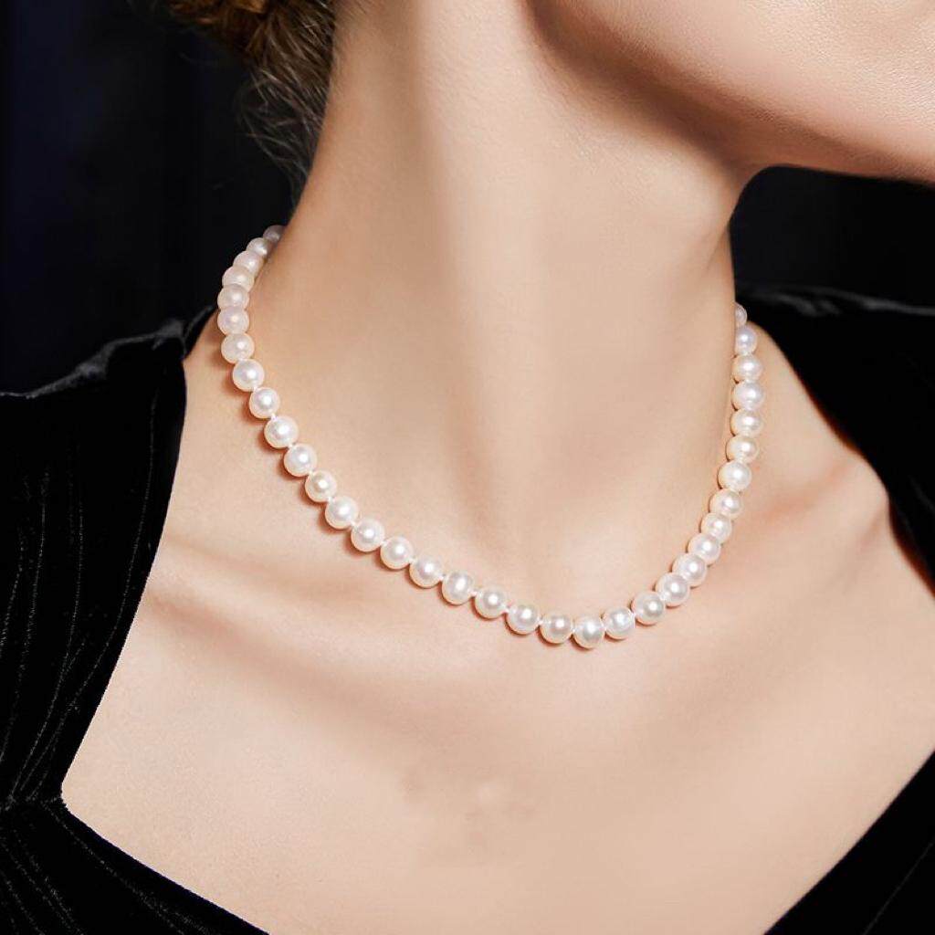 天然淡水无核珍珠项链近圆强光S925银微瑕颈链气质女高级节日礼物