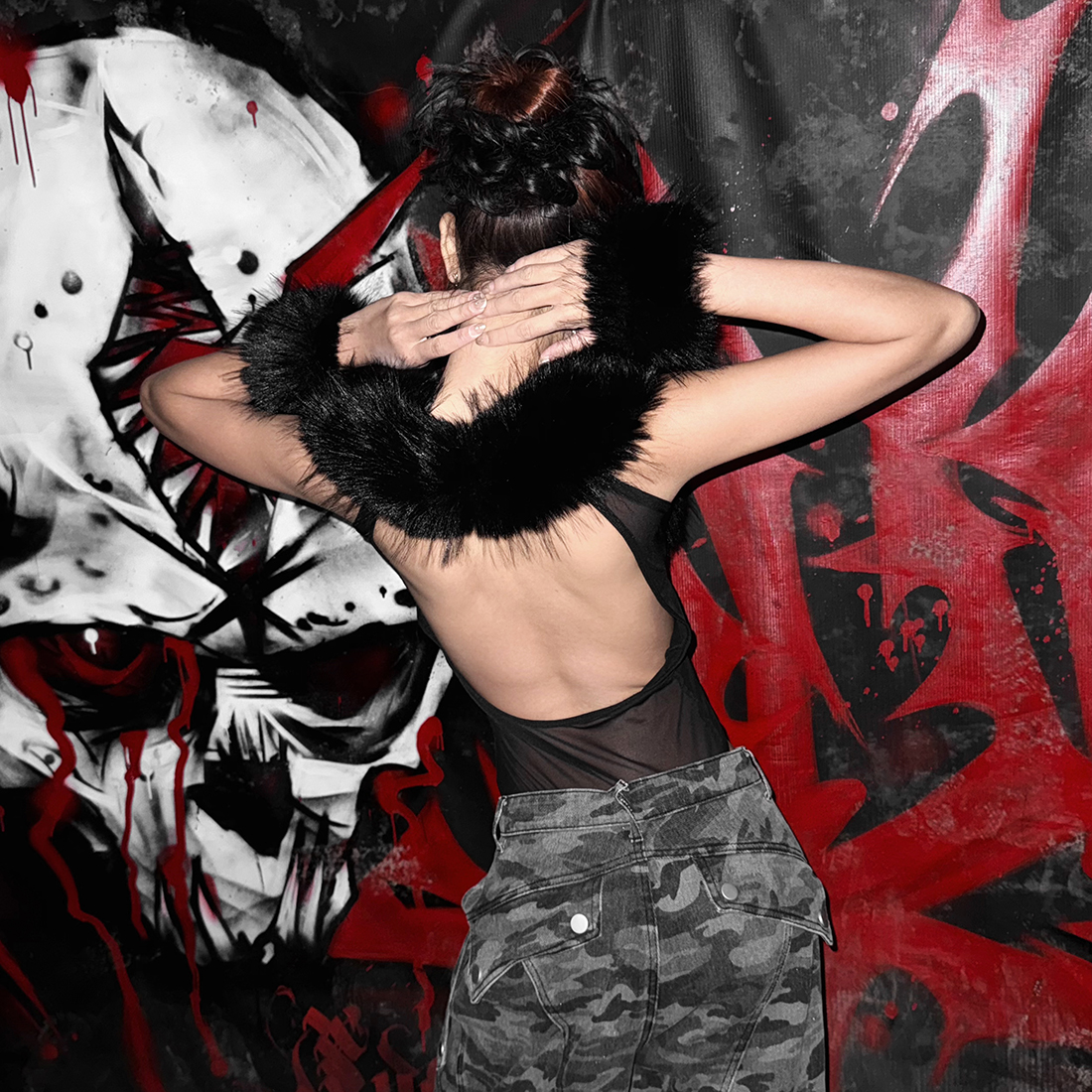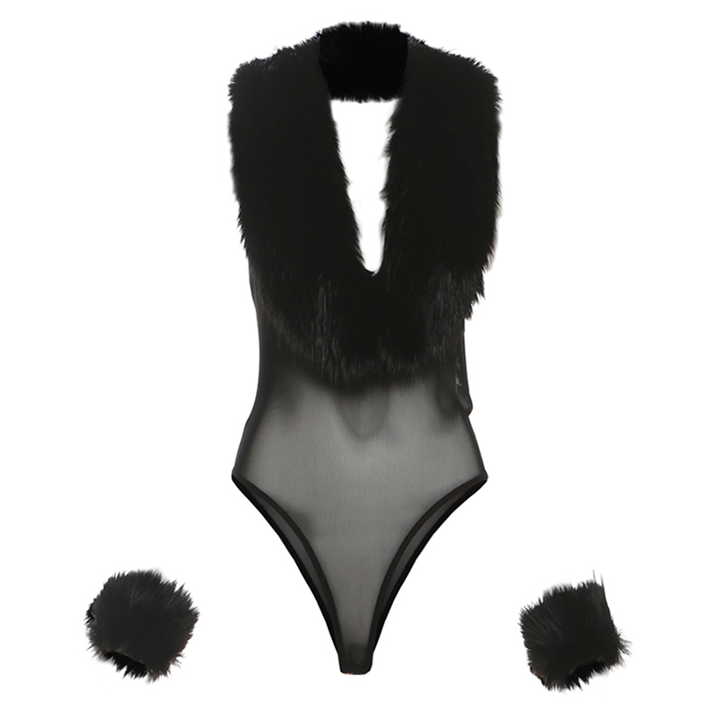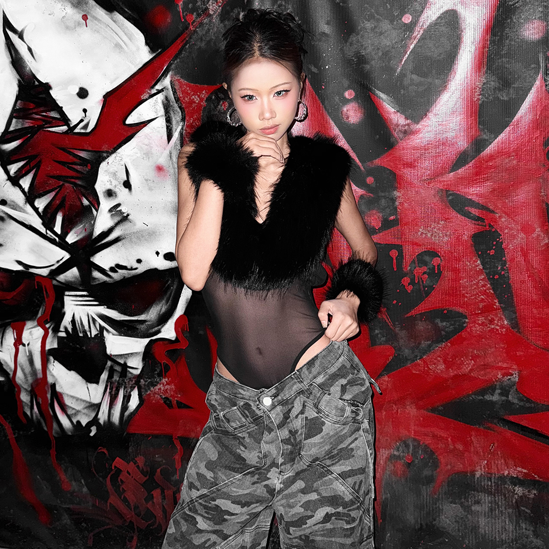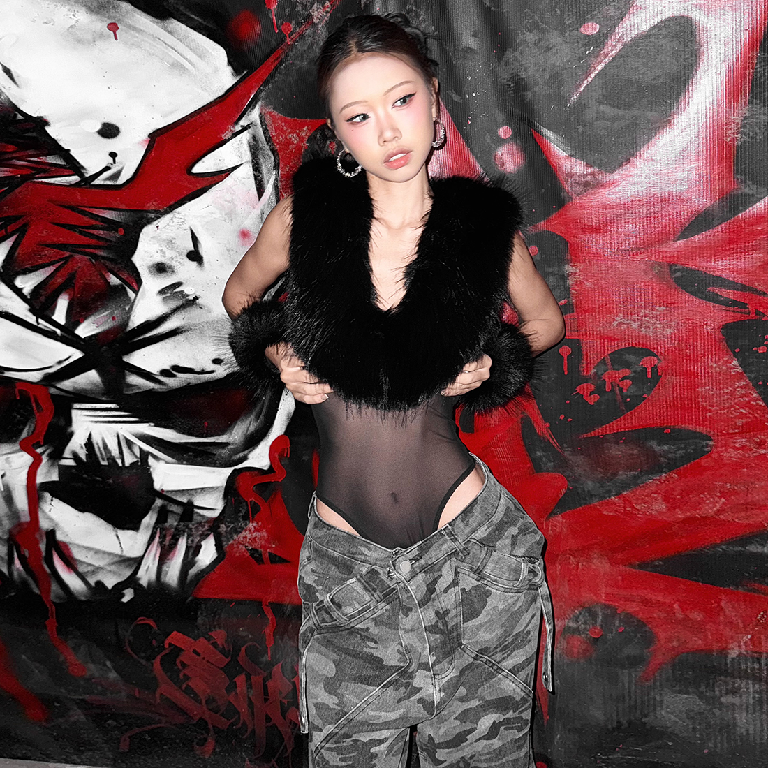 淘宝GDNH怪诞女孩,超A的御姐风毛毛拼接网纱连体衣