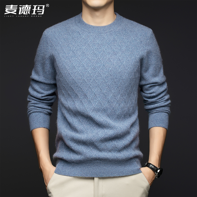 天猫麦德玛服饰旗舰店,轻奢羊绒衫圆领提花休闲针织衫,官方正品 尊贵品质 服务至上 顺丰包邮