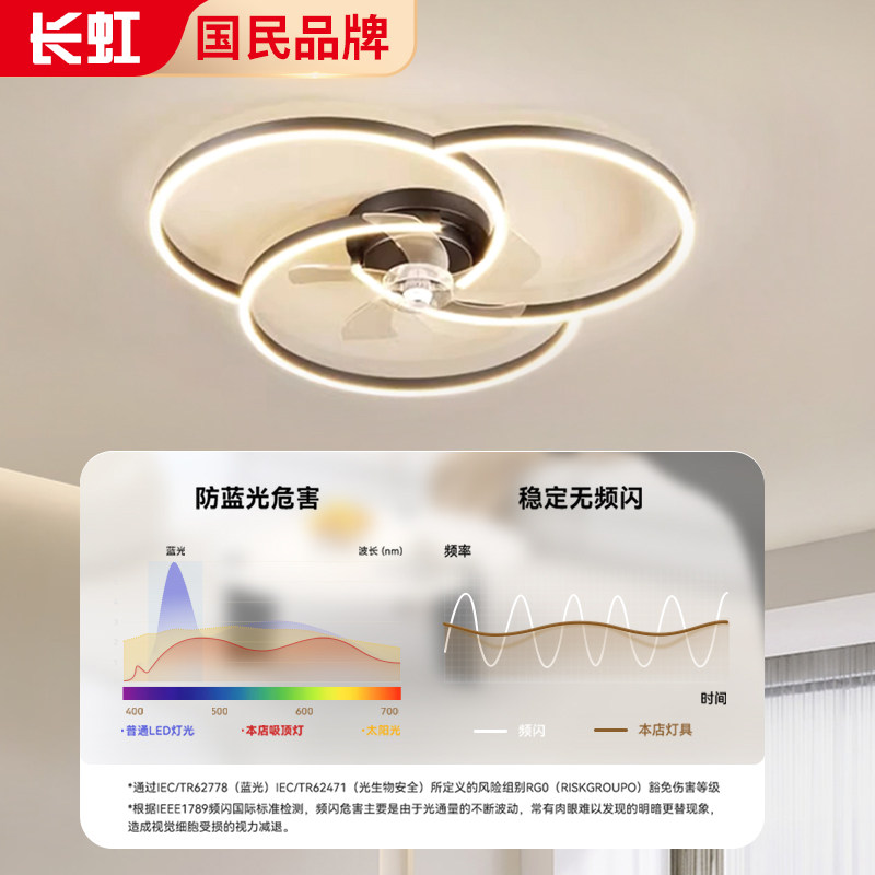 长虹极简风扇灯卧室灯2025年新款现代简约餐厅灯客厅电风扇吸顶灯