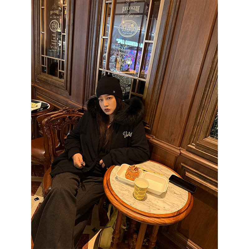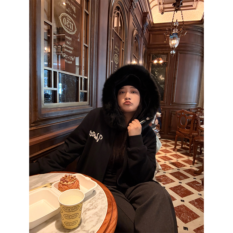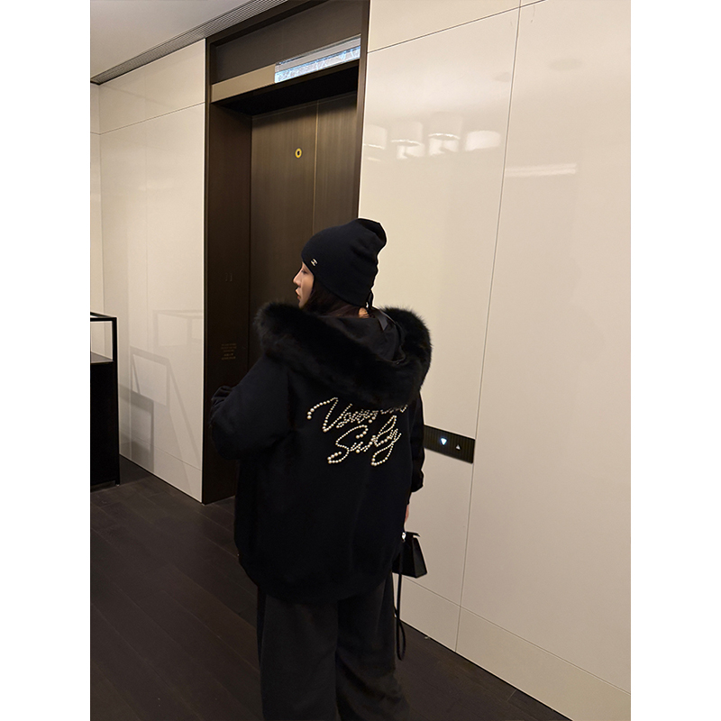 淘宝QBXX STUDIO 铅笔小鑫的店,铅笔小鑫大码女装重工钉珠暖绒高品保暖宽松真毛领外套