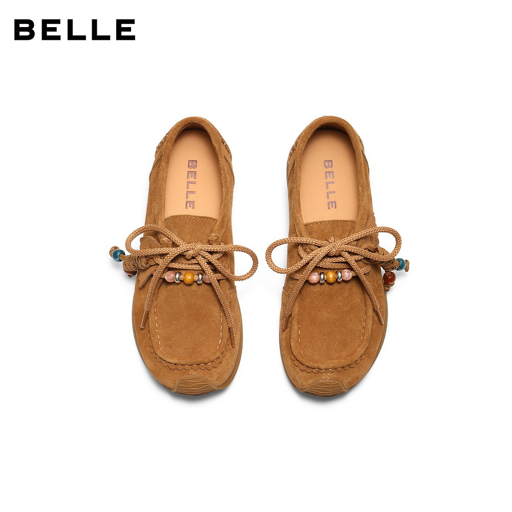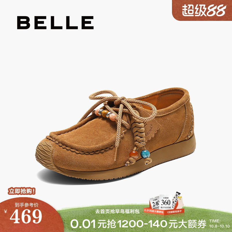 天猫百丽官方旗舰店,百丽复古绒面厚底勃肯鞋女士25秋新串珠休闲袋鼠鞋子B2882CM5
