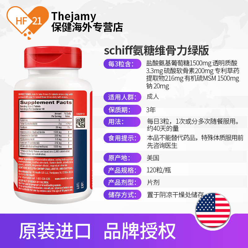 天猫thejamy保健海外专营店,movefree软骨素美国原装进口schiff,添加MSM 适用喜爱运动人群 日常关节保养
