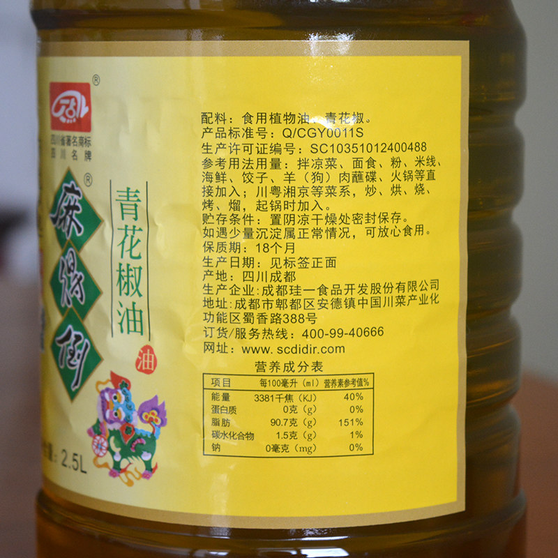 四川麻得倒青花椒油2.5L凉拌过桥米线麻油麻椒油花椒油香麻味商用