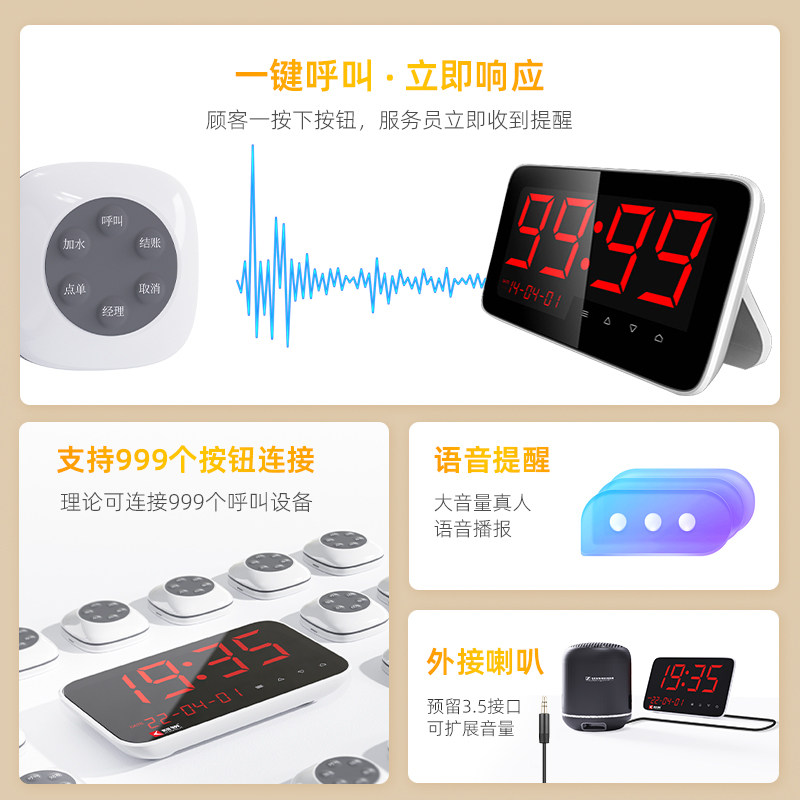 天猫刻锐安防旗舰店,刻锐多功能无线远距离茶楼服务铃,无线配对 距离远信号强 多功能点单加水服务