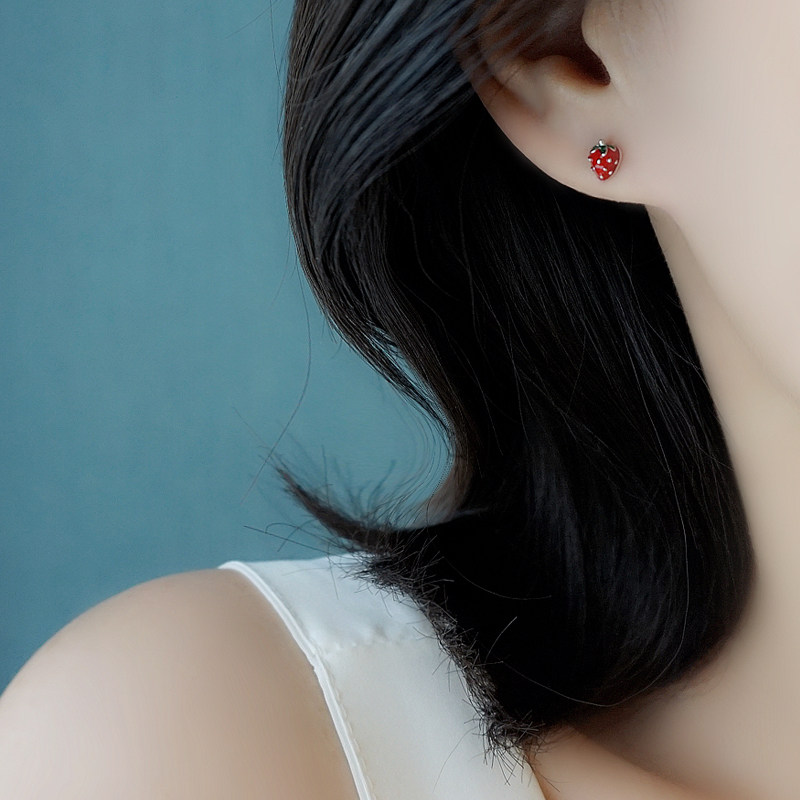 淘宝小Z优品流行饰品,小Z优品925纯银红色草莓水果耳钉简约小巧可爱睡觉不用摘耳环新款