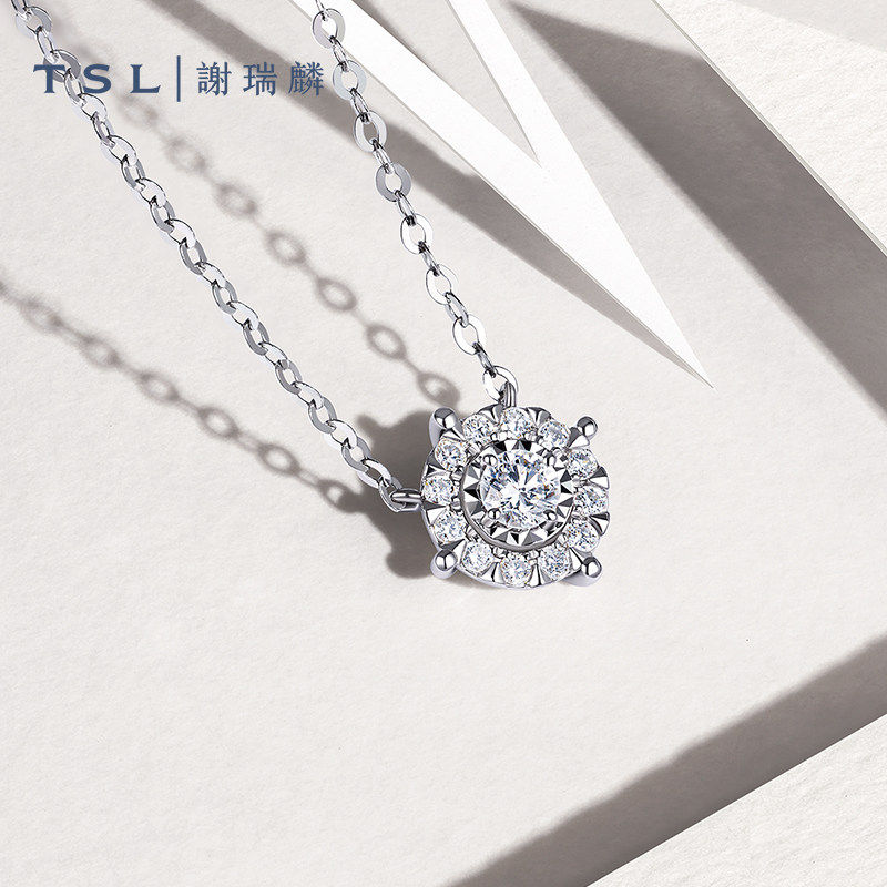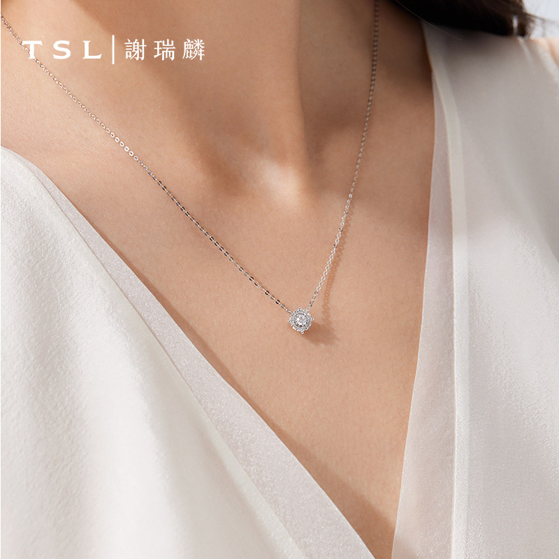 天猫TSL谢瑞麟官方旗舰店,谢瑞麟星之光钻石项链一克拉效果,星之光 钻石项链 群镶套链
