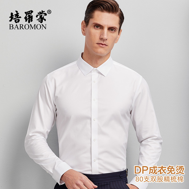 培罗蒙男士长袖衬衫纯白色正装商务休闲DP成衣免烫抗皱易打理衬衣