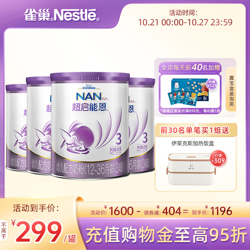 天猫雀巢母婴官方旗舰店,雀巢超启能恩3段4罐奶粉适度水解,科学防御小敏感 营养充沛新升级