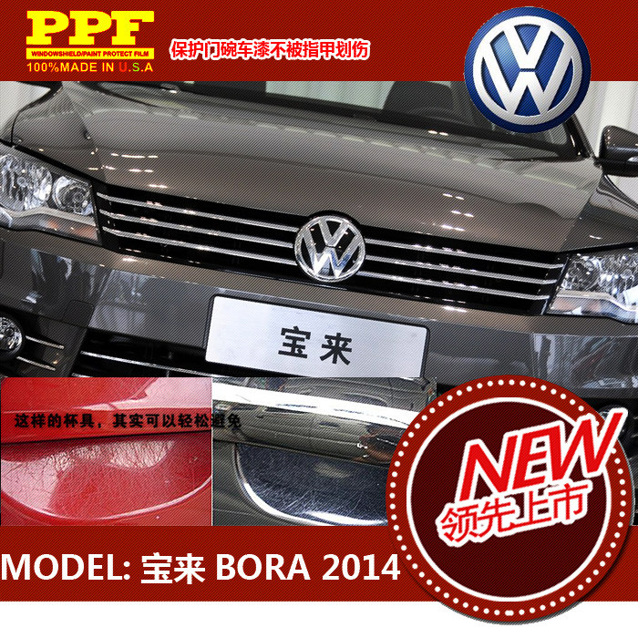 淘宝Z家Ecu动力提升,大众宝来bora 2014保护贴膜汽车碗,门碗膜的材质取自于美国PPF漆面保护膜: 1.划痕自动修复功能,并能增加漆面亮度 2.9H超高硬度,避免高速石子打伤车漆,并能有效隔绝虫胶、树胶、酸雨对车漆的腐蚀。 3.超强的韧性,能有效抵御轻度的划伤、擦碰。 ※此种透明膜用于整车贴膜,一般车型2万元左右