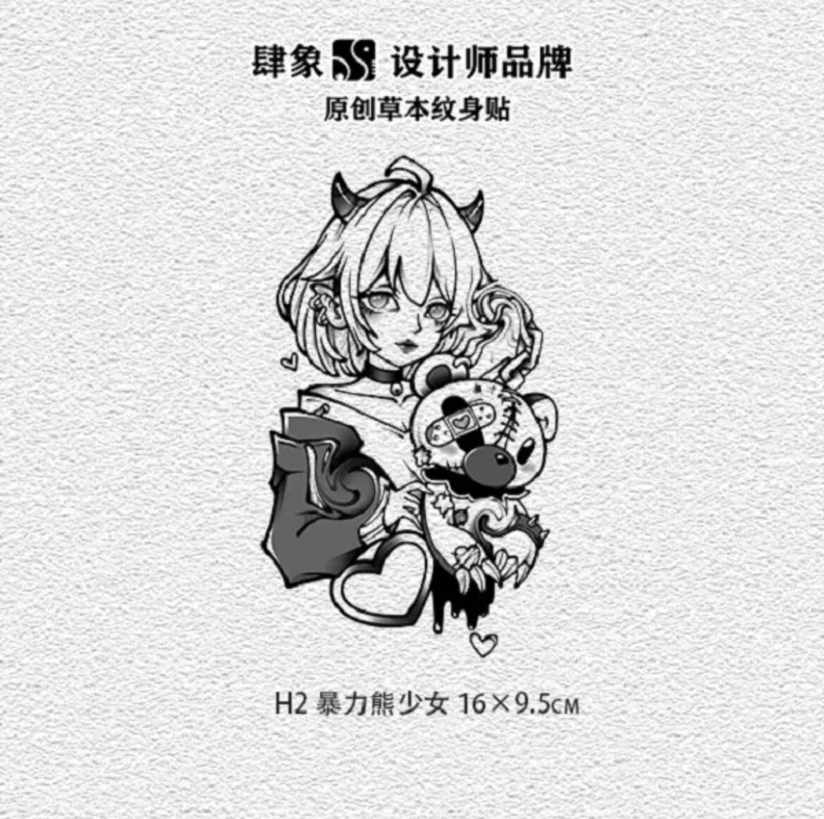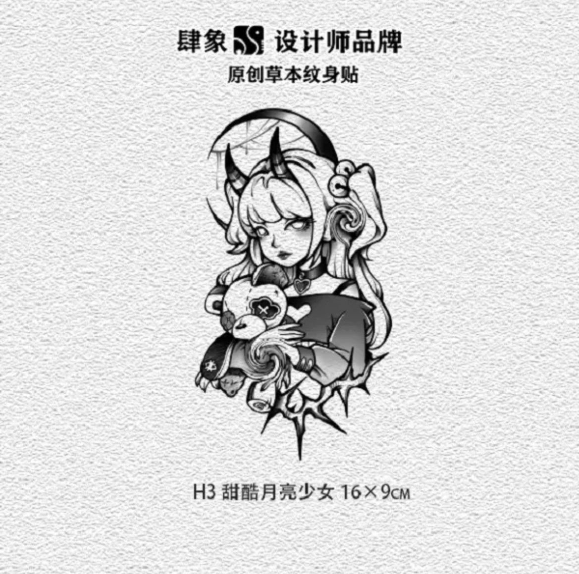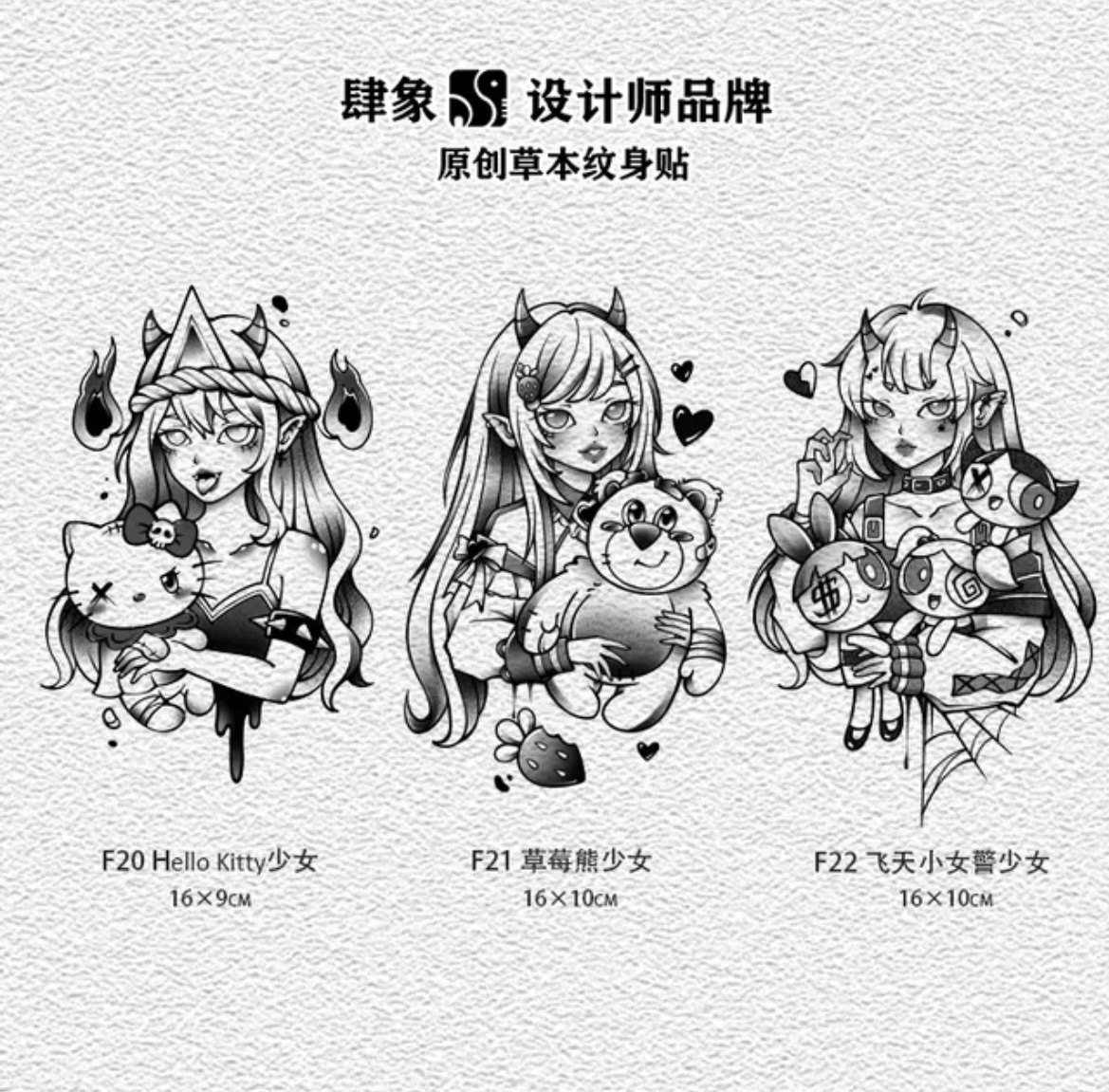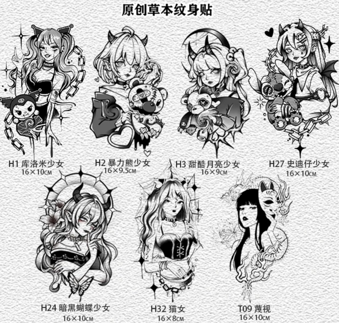 淘宝肆象纹青社设计师品牌,肆象草本纹身贴图案欧美甜酷库洛米少女逼真持久防水防搓不反光