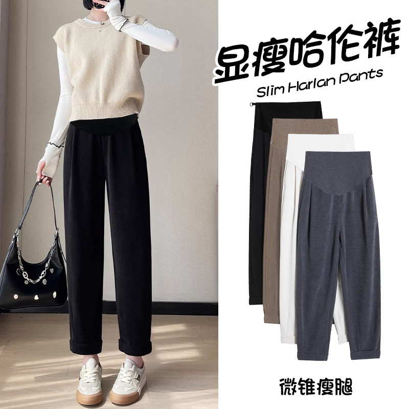 淘宝米儿时尚孕装,孕妇哈伦裤秋冬季宽松显瘦奶奶裤时尚托腹大码200斤糯米条灯笼裤