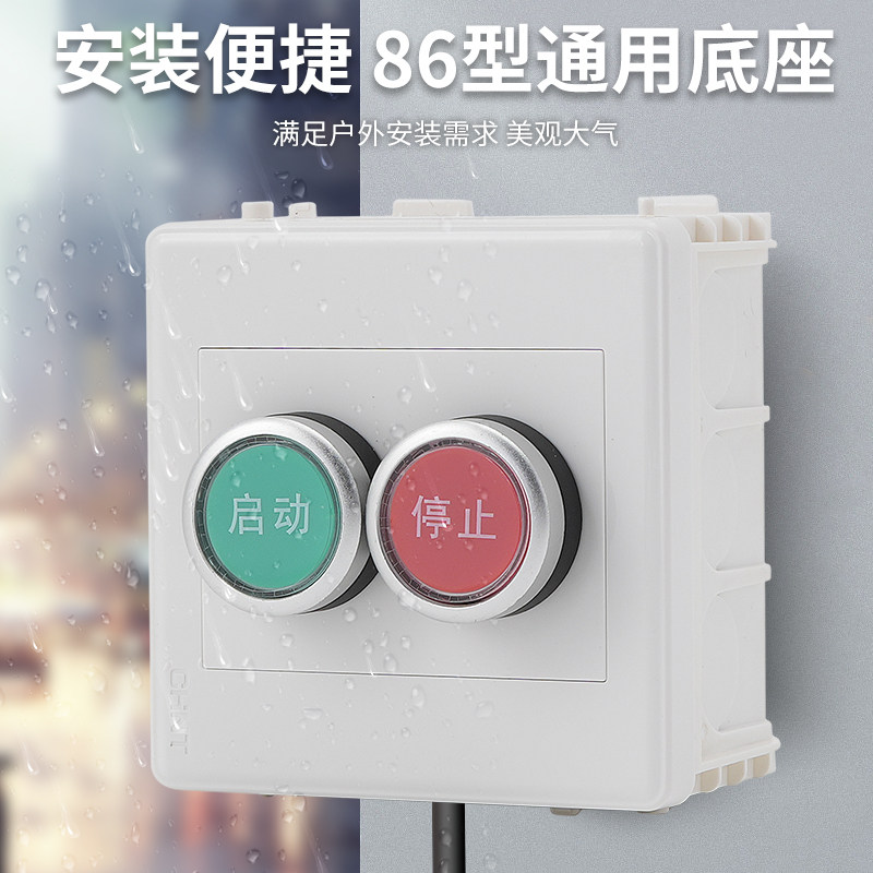 淘宝科博按钮盒品牌店,86型按钮开关控制加厚面板盒电梯风机启停塑料户外墙壁暗装防水款