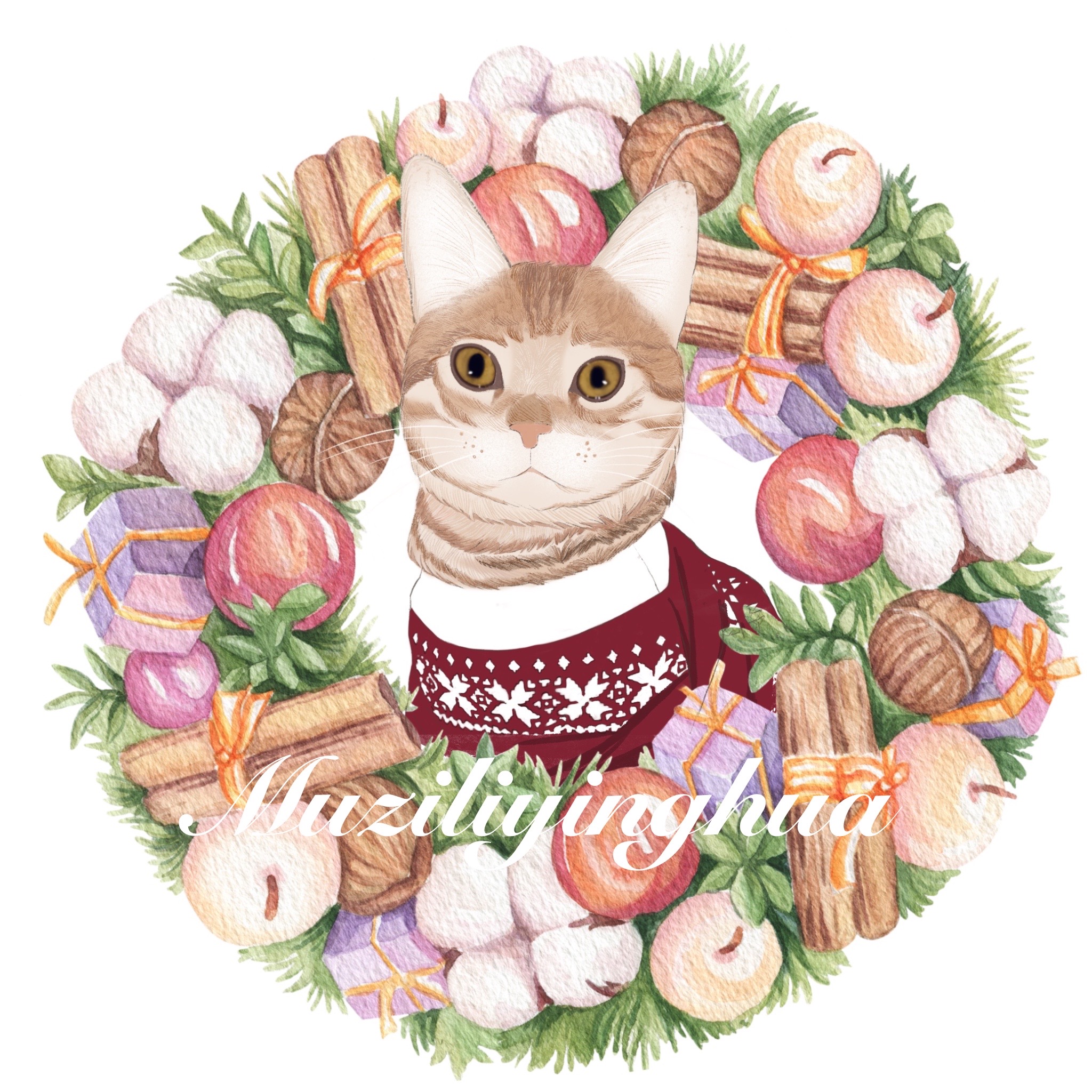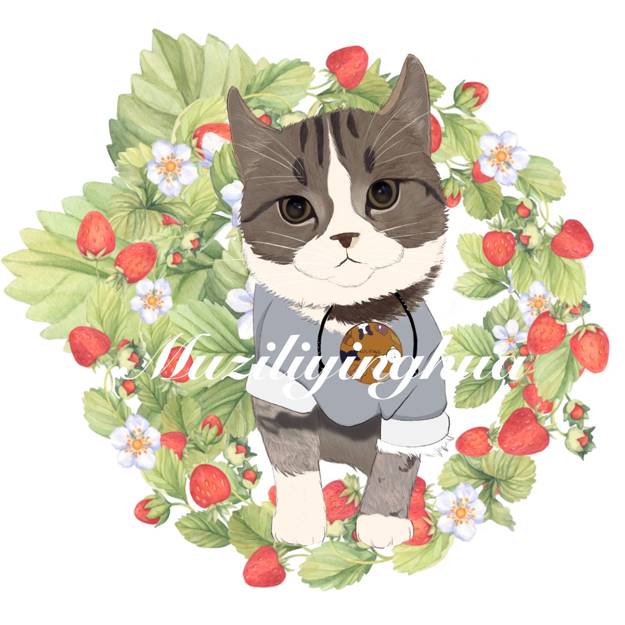 淘宝木子李映画,水彩画像定制纯手绘猫咪照片卡通画