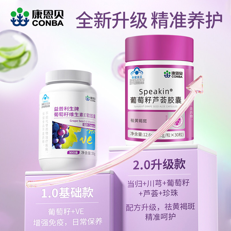 天猫康恩贝科雷朗专卖店,康恩贝葡萄籽芦荟胶囊祛黄褐斑女士淡化雀斑内服搭维生素ce保健品