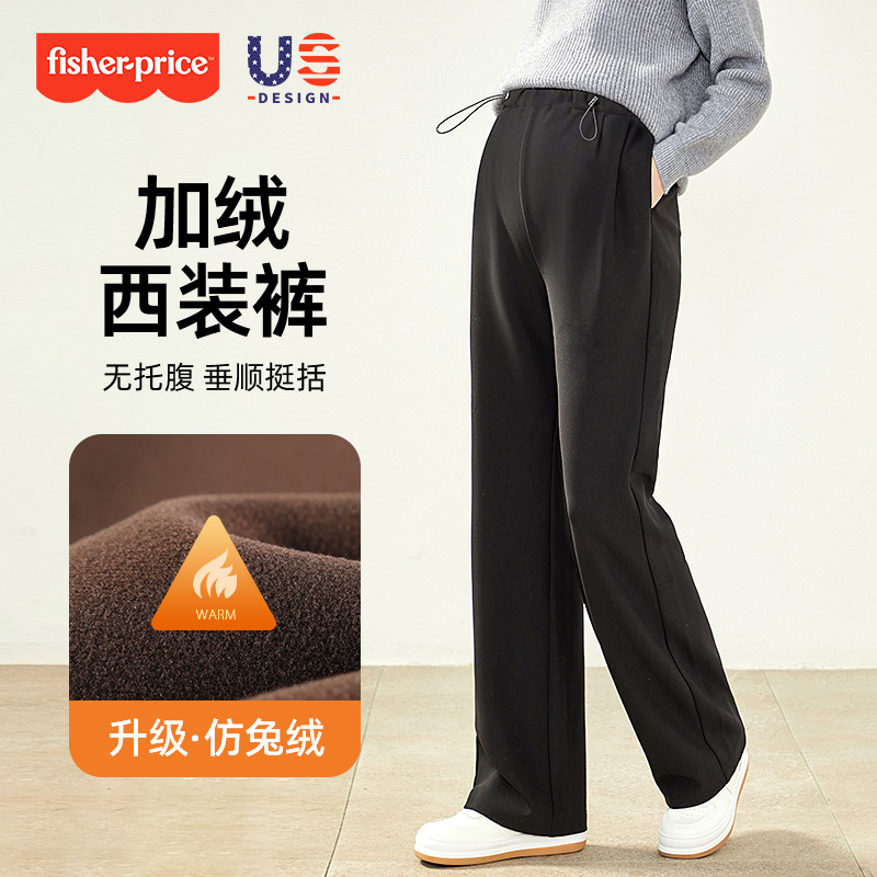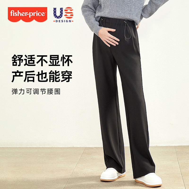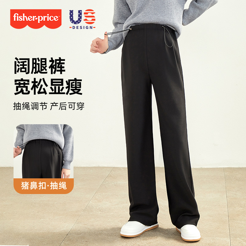 天猫爱鹿母婴专营店,费雪孕妇西装裤秋冬无托腹阔腿裤,抽绳可调节孕妇裤子 产后可穿 弹力针织面料