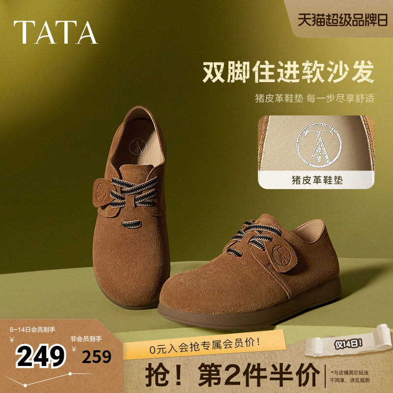 天猫百丽集团官方outlets店,TATA他她小熊鞋系带勃肯鞋女鞋棕色单鞋女鞋春季新款女鞋YNA01AM5,时尚休闲勃肯鞋女鞋