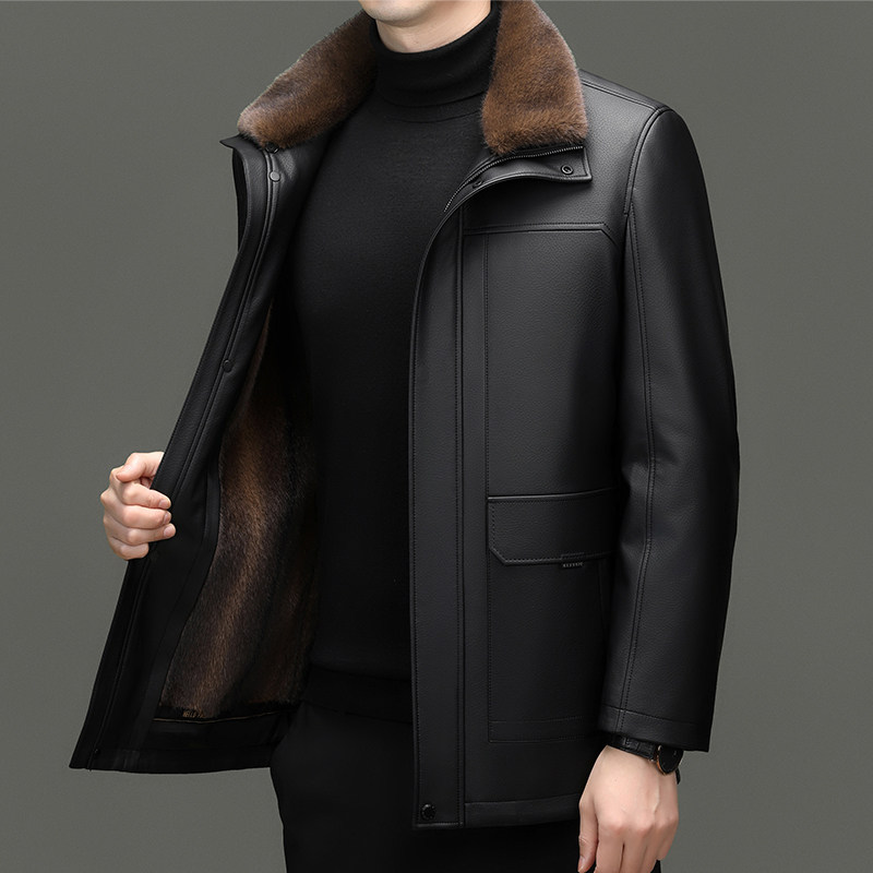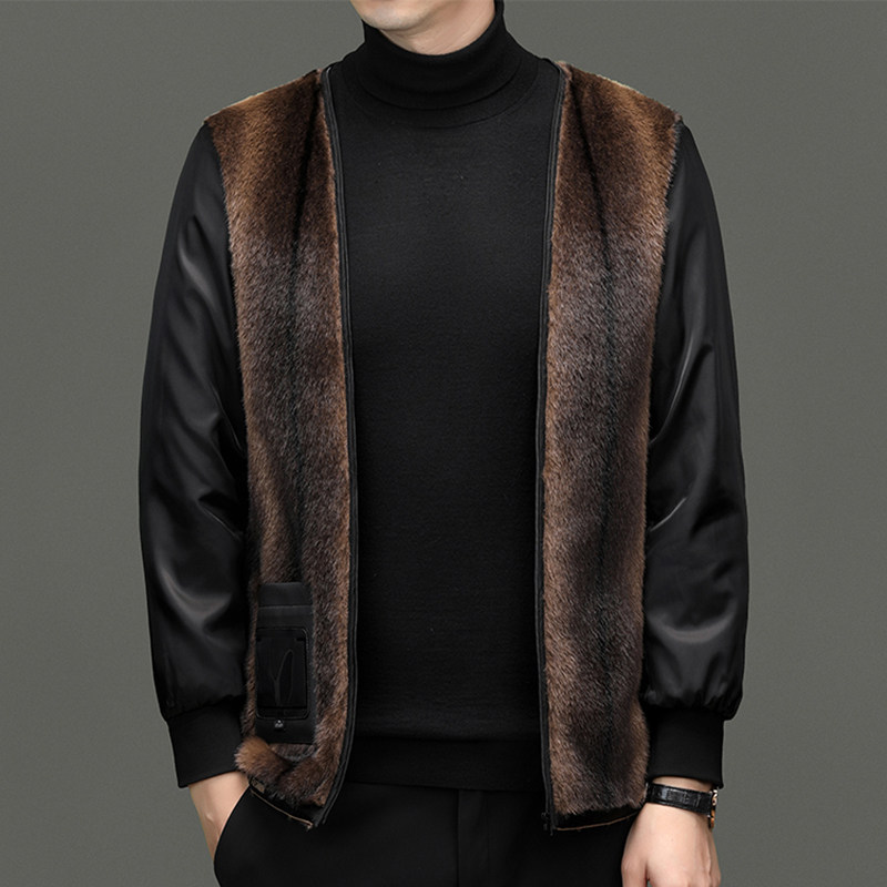 淘宝啄木鸟品牌工厂直销店,海宁真皮皮衣男士貂绒皮毛一体