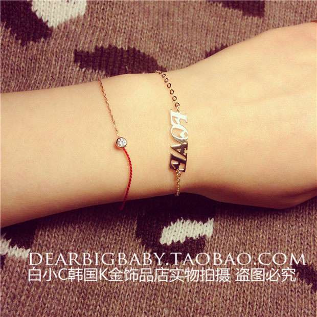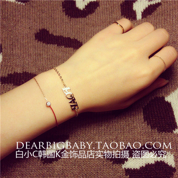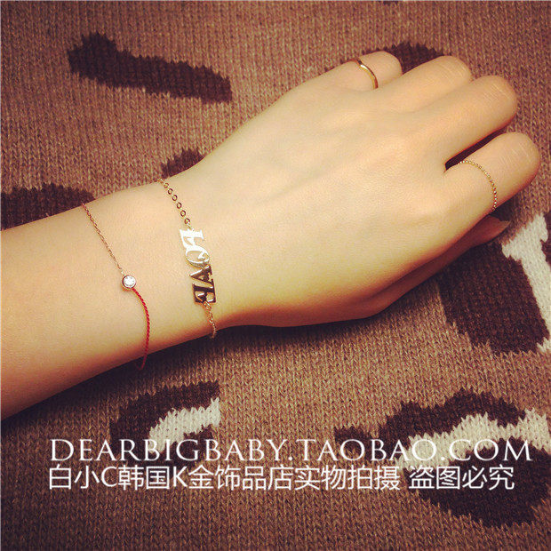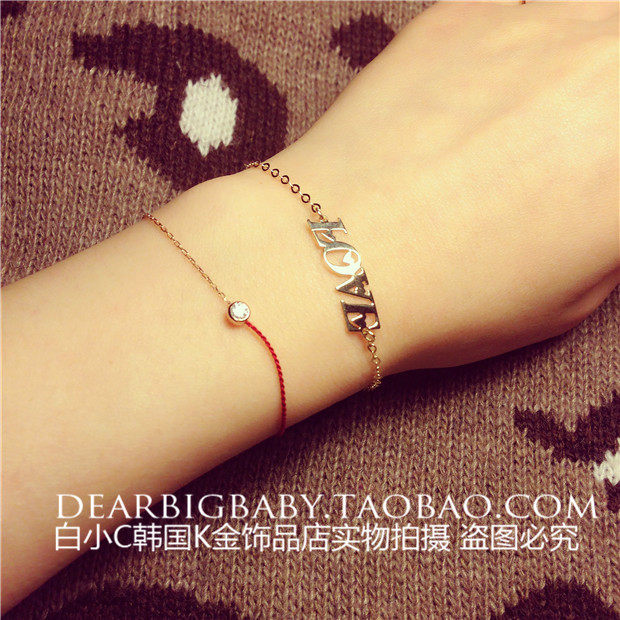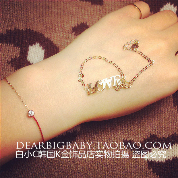 淘宝千家卓百货供应27,2023韩国进口纯14K金首饰 闪闪l爱心ove字母手链 黄金纯金手链
