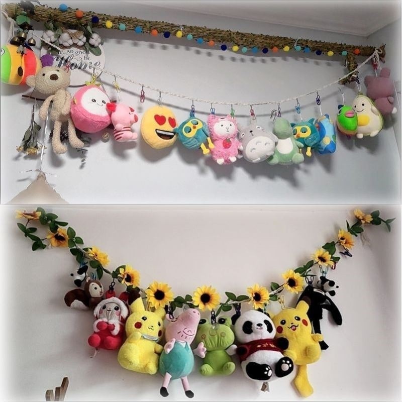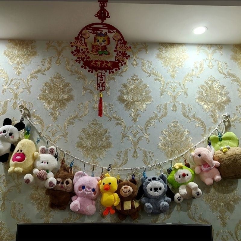 淘宝景东日货铺,公仔收纳墙娃娃收纳展示架娃娃墙毛公仔收纳墙挂绳手工编织娃悬挂