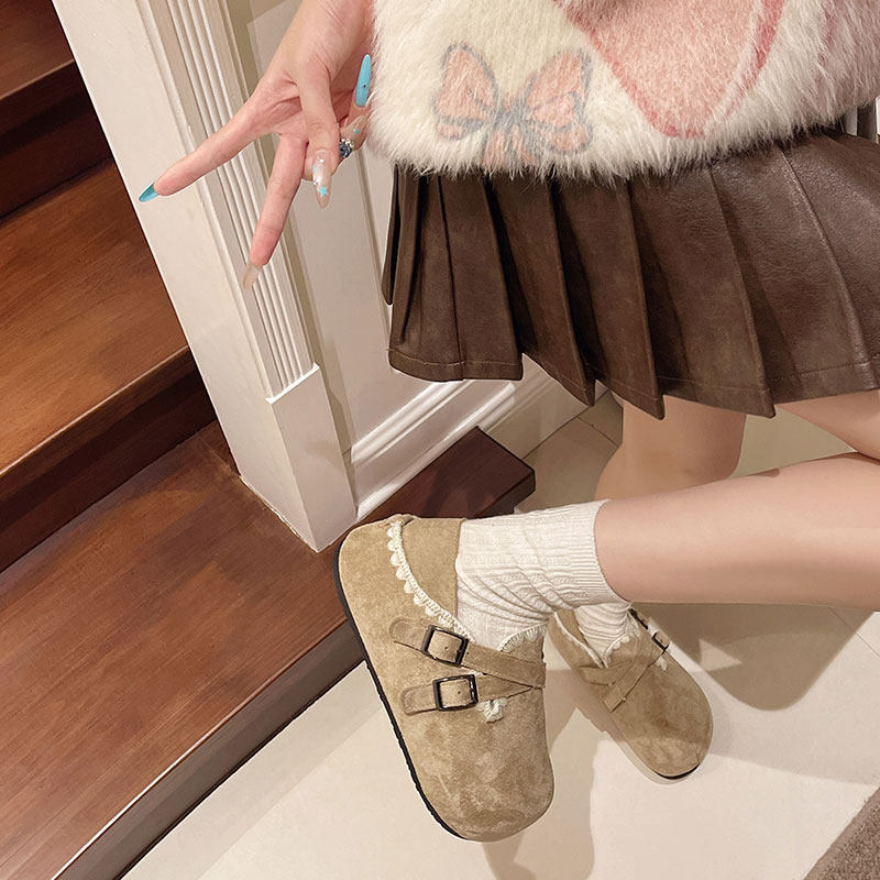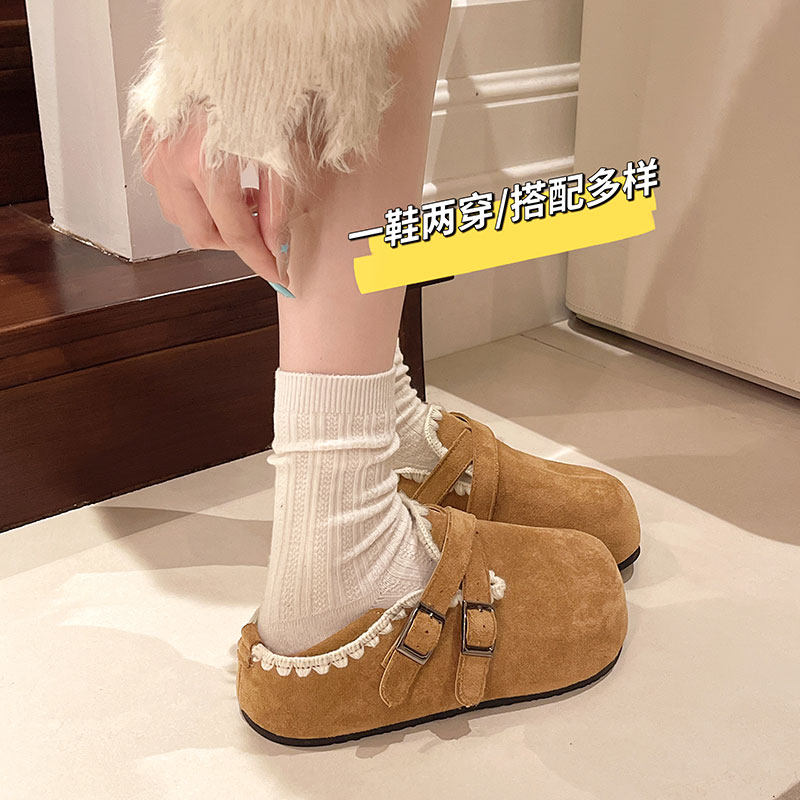 复古皮面加绒勃肯鞋女2025年冬季新款厚底一脚蹬包头半拖鞋棉拖鞋券后价¥58淘工厂美妆直营 52 分前