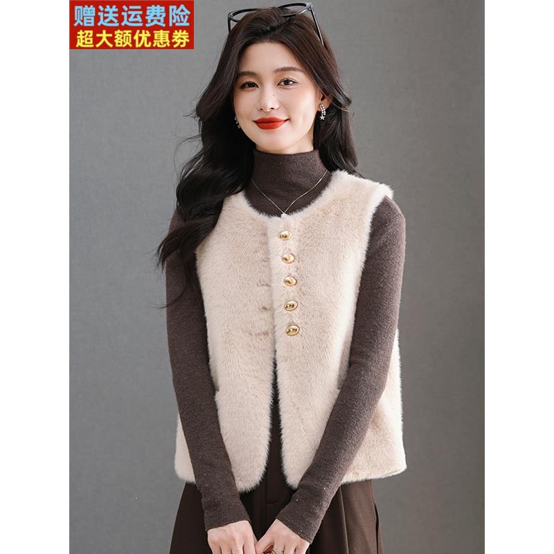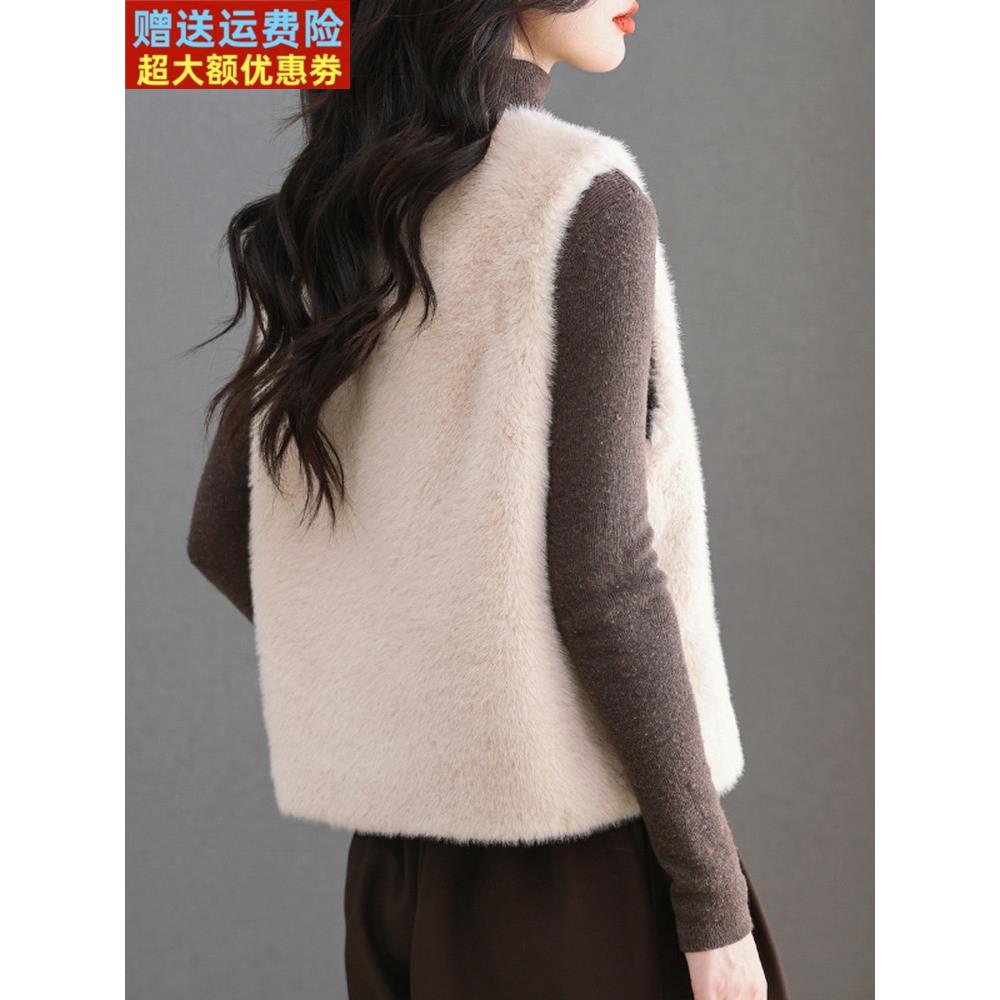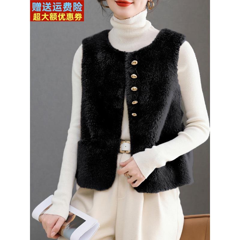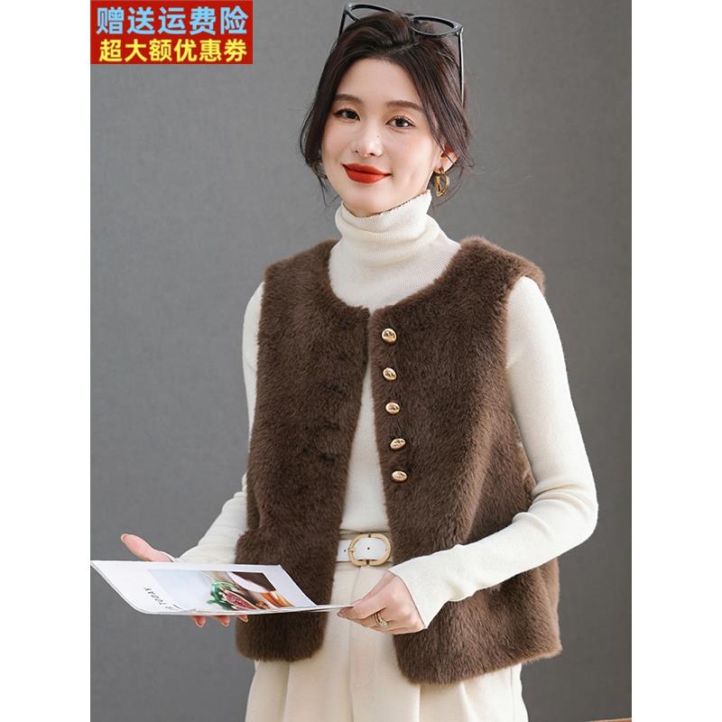 淘宝批发羊毛杉 羊绒衫 毛衣针织女装,皮草水貂绒无袖马甲背心外套女开衫短款单排扣宽松2025新款春秋冬