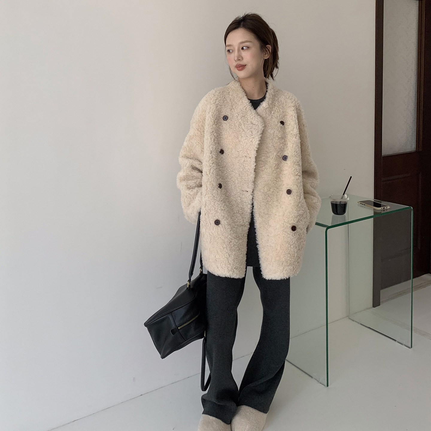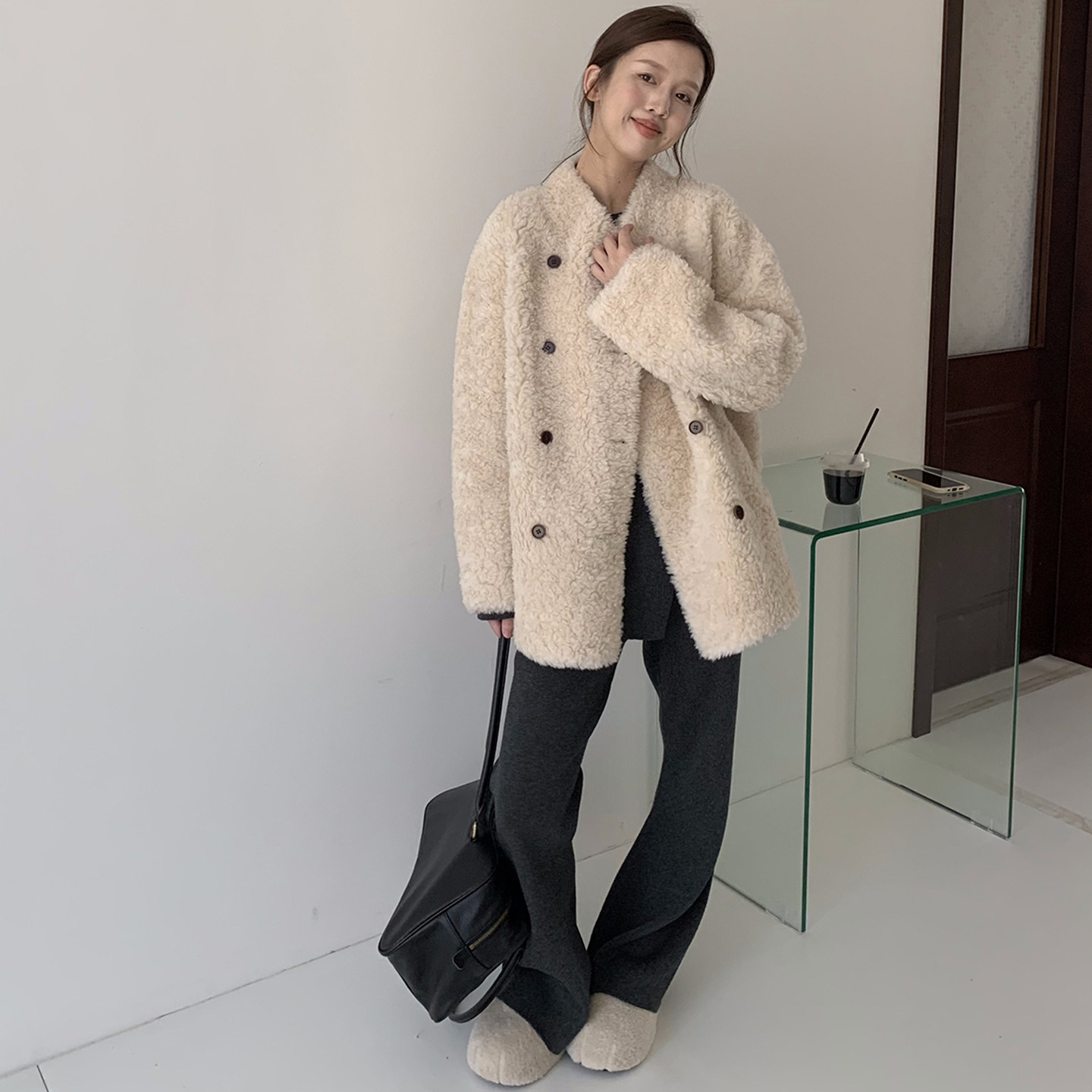 淘宝云朵衣记,冬季皮毛一体羊羔绒中长款外套