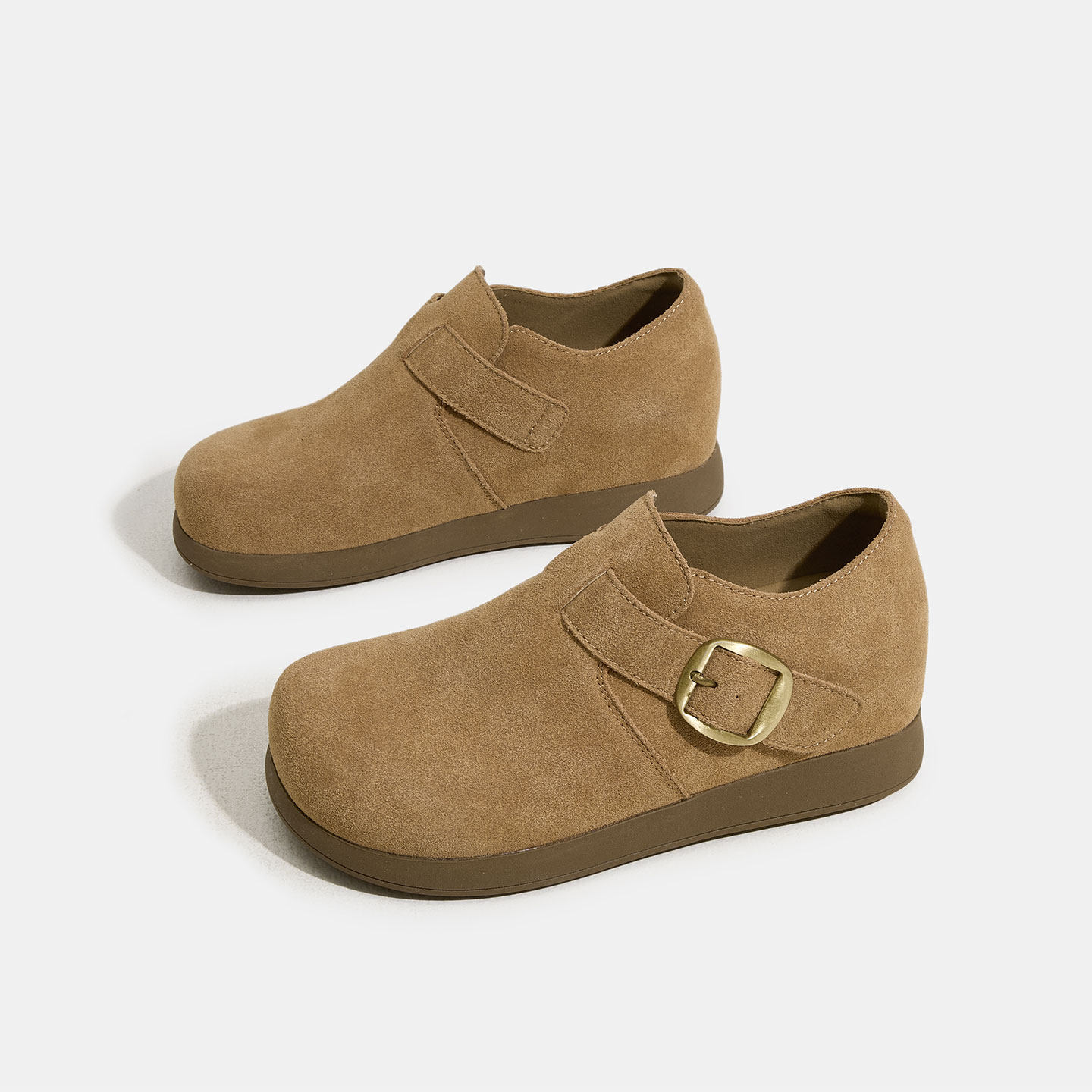 淘宝乐一真皮女鞋,厚底牛反绒皮内增高搭扣勃肯鞋