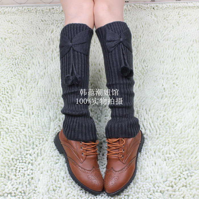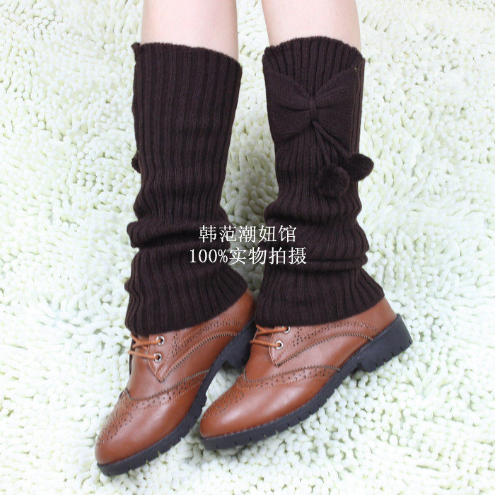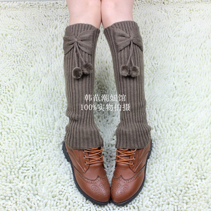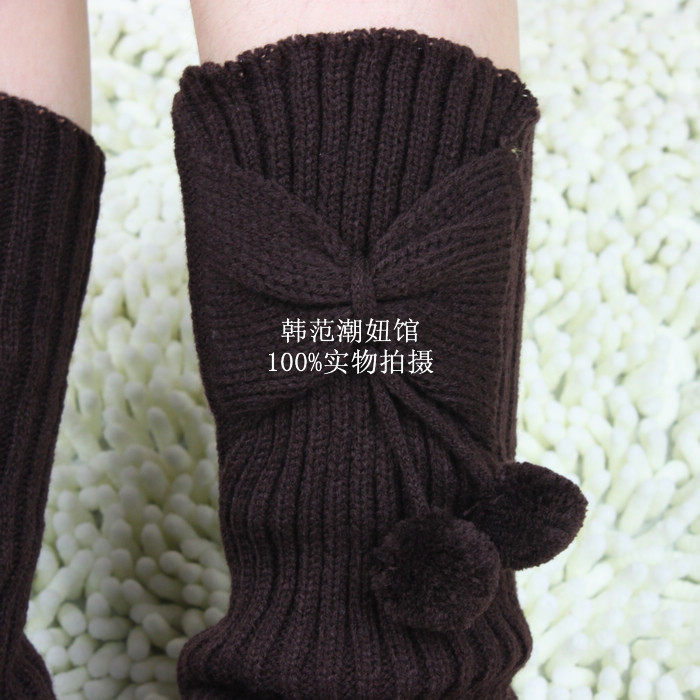 秋冬韩版百搭毛线宽松中筒袜套潮女保暖护腿套靴套蝴蝶结堆堆袜