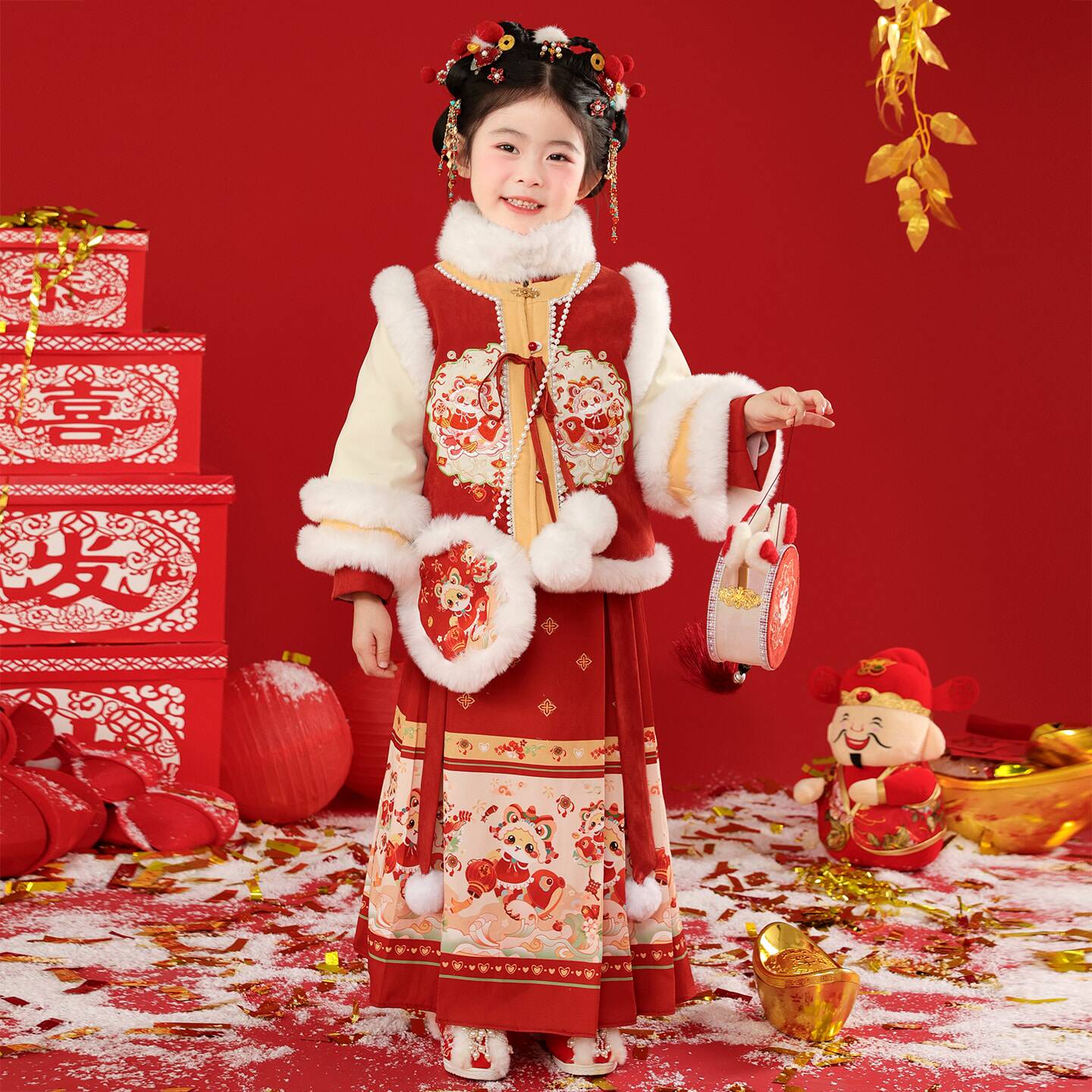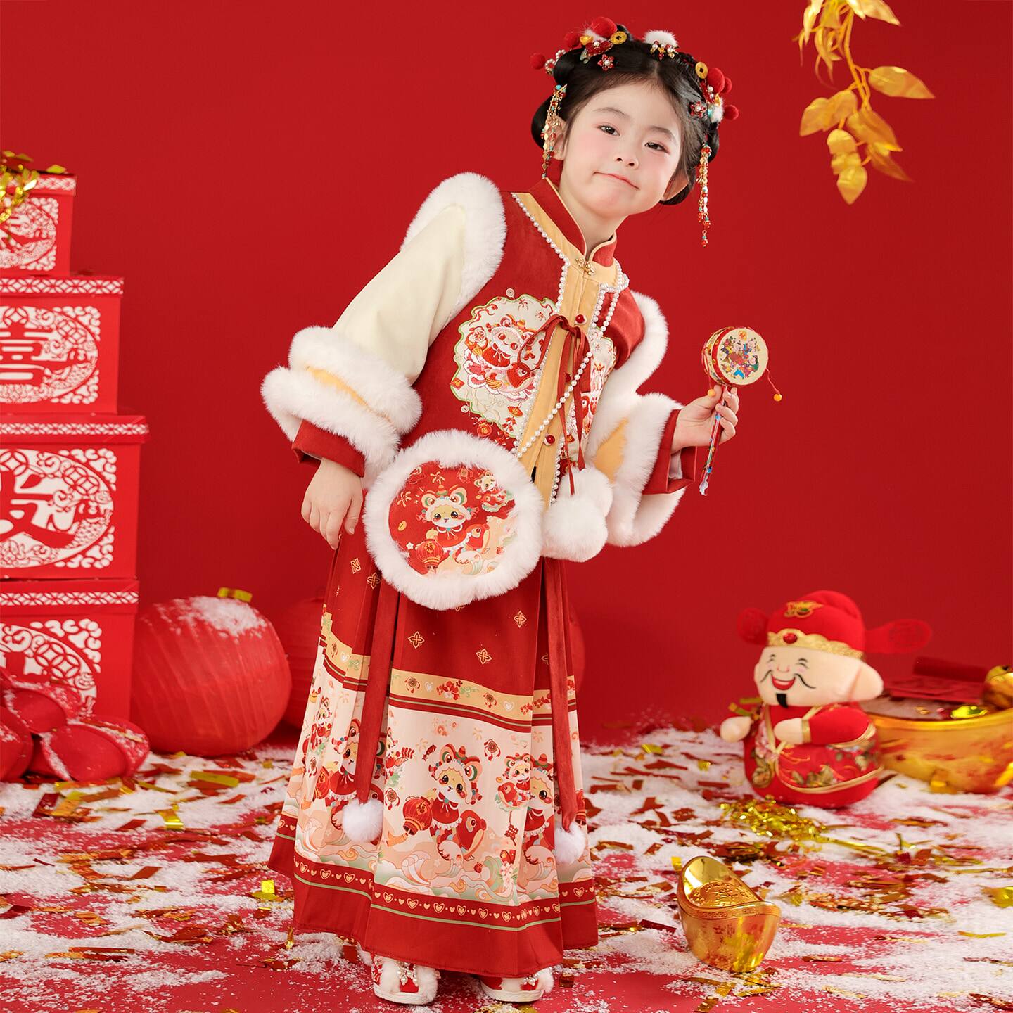 天猫安妮优儿旗舰店,拜年服女童汉服秋冬明制马面裙套装女孩过年喜庆衣服古风过年服