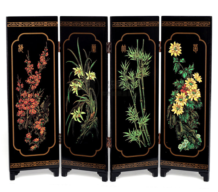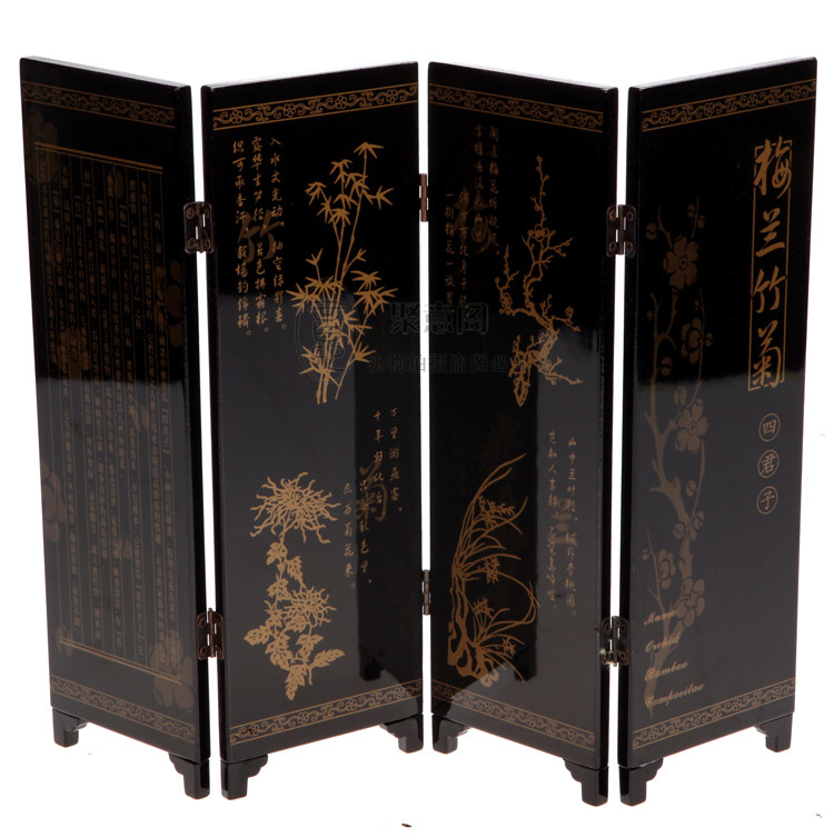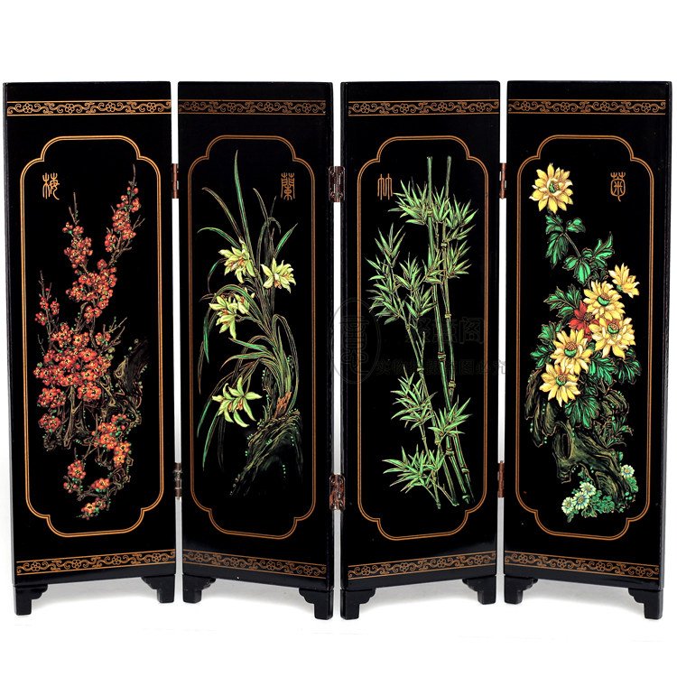 中国风漆器屏风书房装饰摆件 节日送同事朋友客户礼品 梅兰竹菊