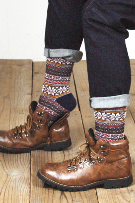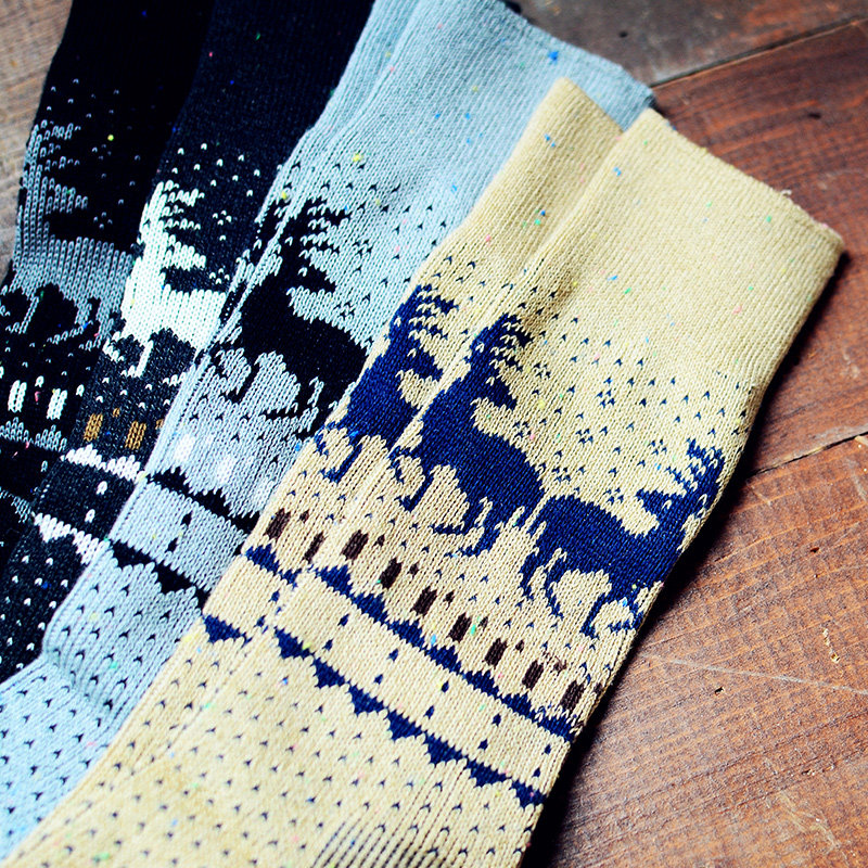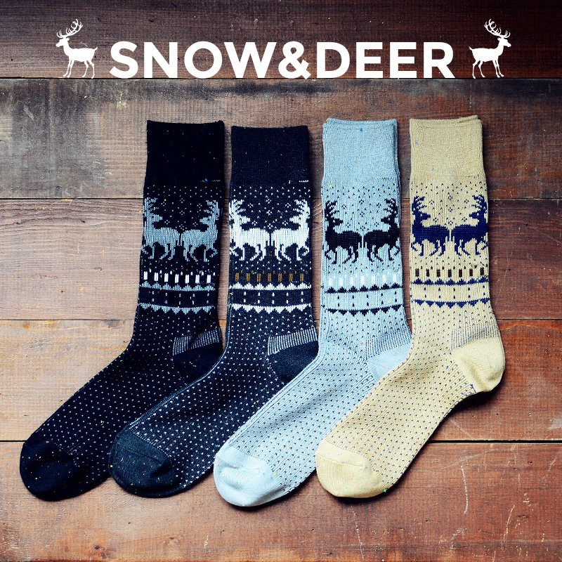 淘宝川上赞 CSZAN,北欧秋冬雪花小麋鹿男士靴子袜子
