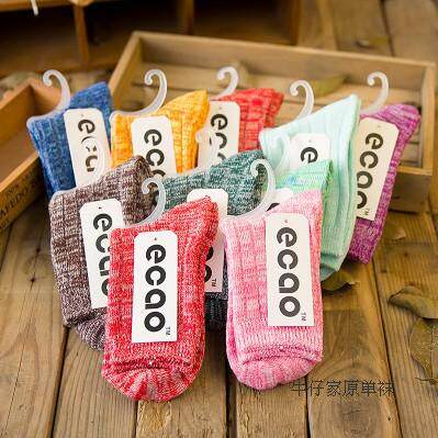 外贸原单日系情侣复古民族风全棉条纹粗线糖果色女士中筒男袜子女