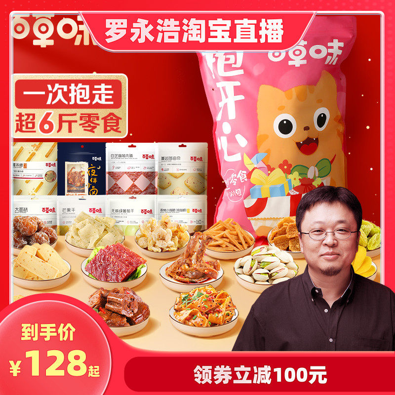 天猫百草味旗舰店,【罗永浩专享】百草味-巨型零食大礼包6斤整箱送女友网红爆款食品,600款零食 一站购 6.9元起开抢