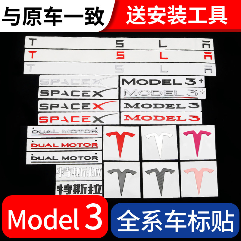 天猫创享汽车用品旗舰店,特斯拉MODEL3车标贴黑化前后尾标,原版工艺 替换原车 带安装视频