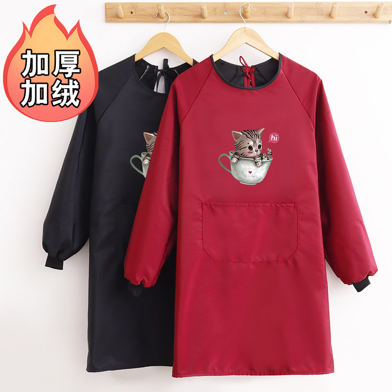 加绒时尚防水围裙女家用做饭工作服反穿罩衣男士加大加厚罩衫定制