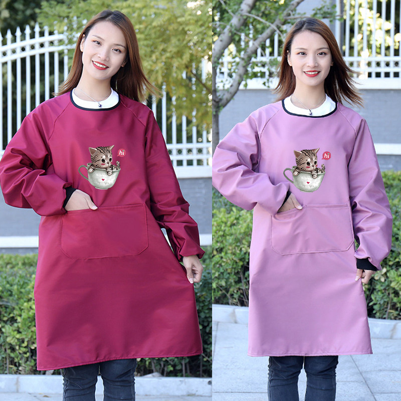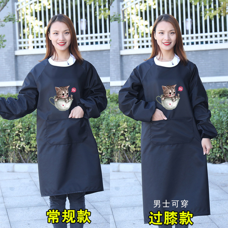 韩版可爱防水长袖围裙家用厨房做饭罩衣女带袖有袖子工作服围腰