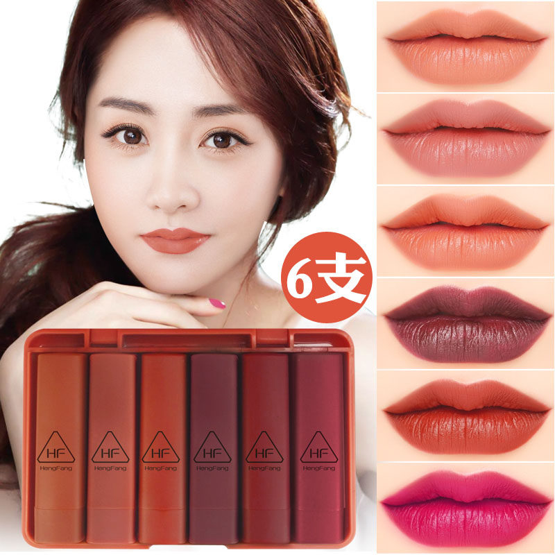 淘宝芭彩化妆品,新品恒芳6支南瓜色系哑光丝绒口红