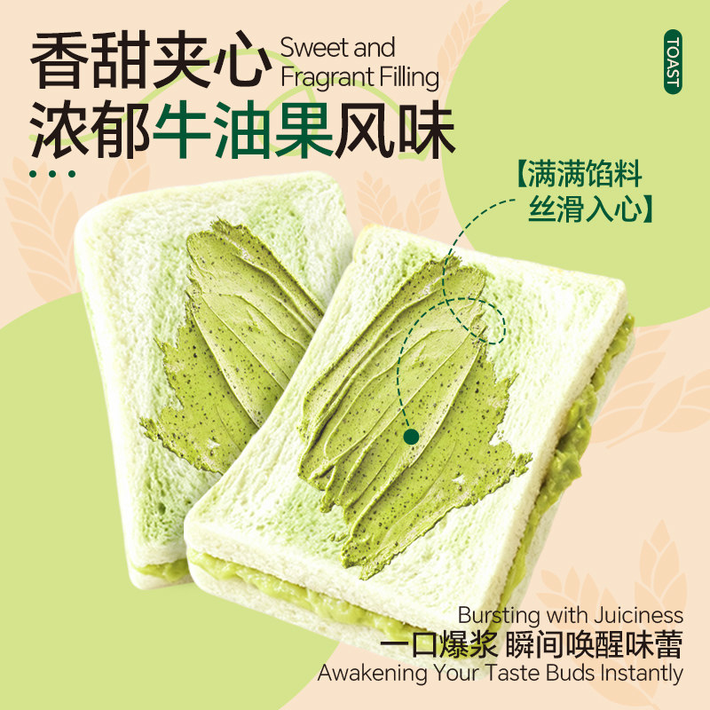 天猫每天有面包旗舰店,牛油果无边夹心吐司整箱营养健康食品早餐代餐零食懒人速食下午茶