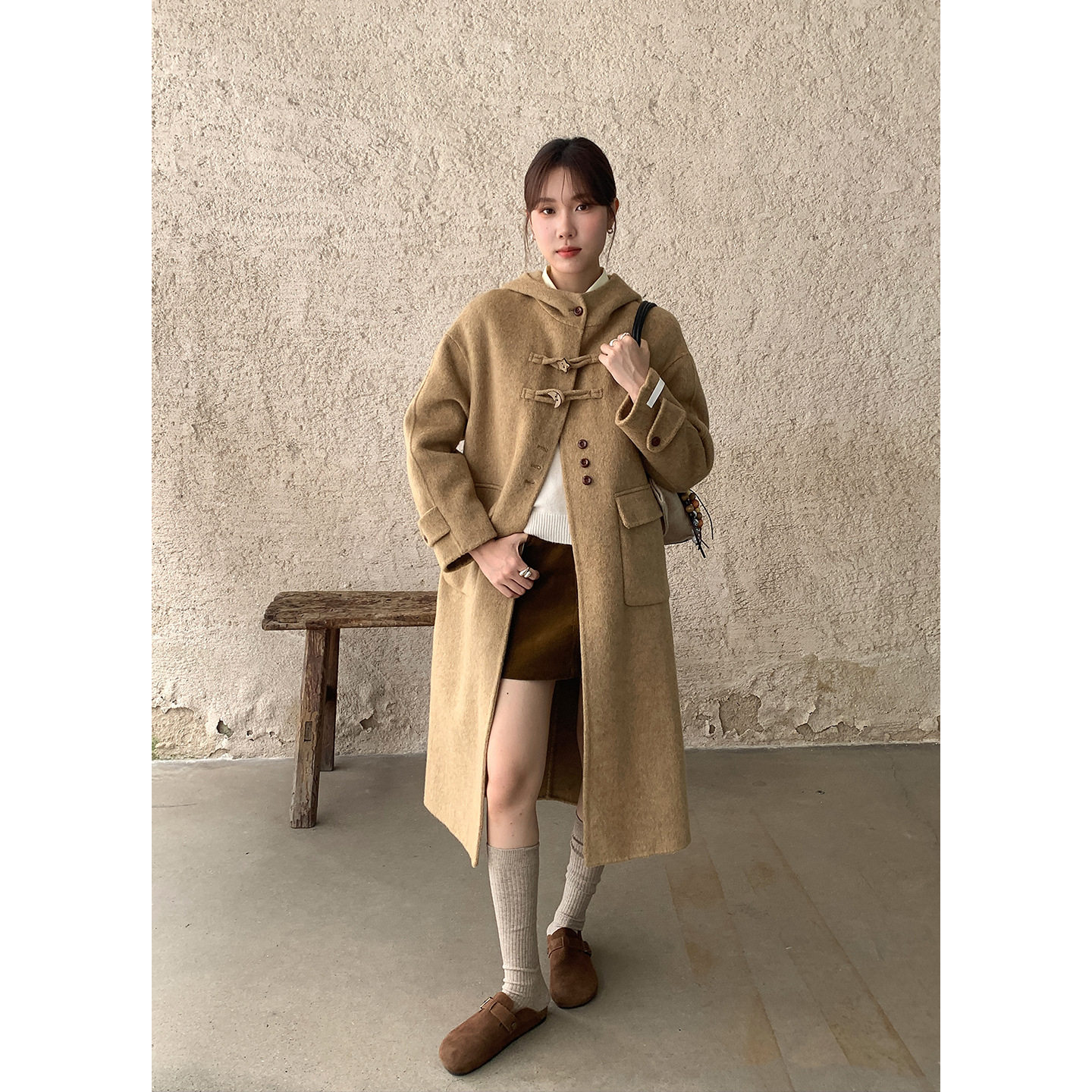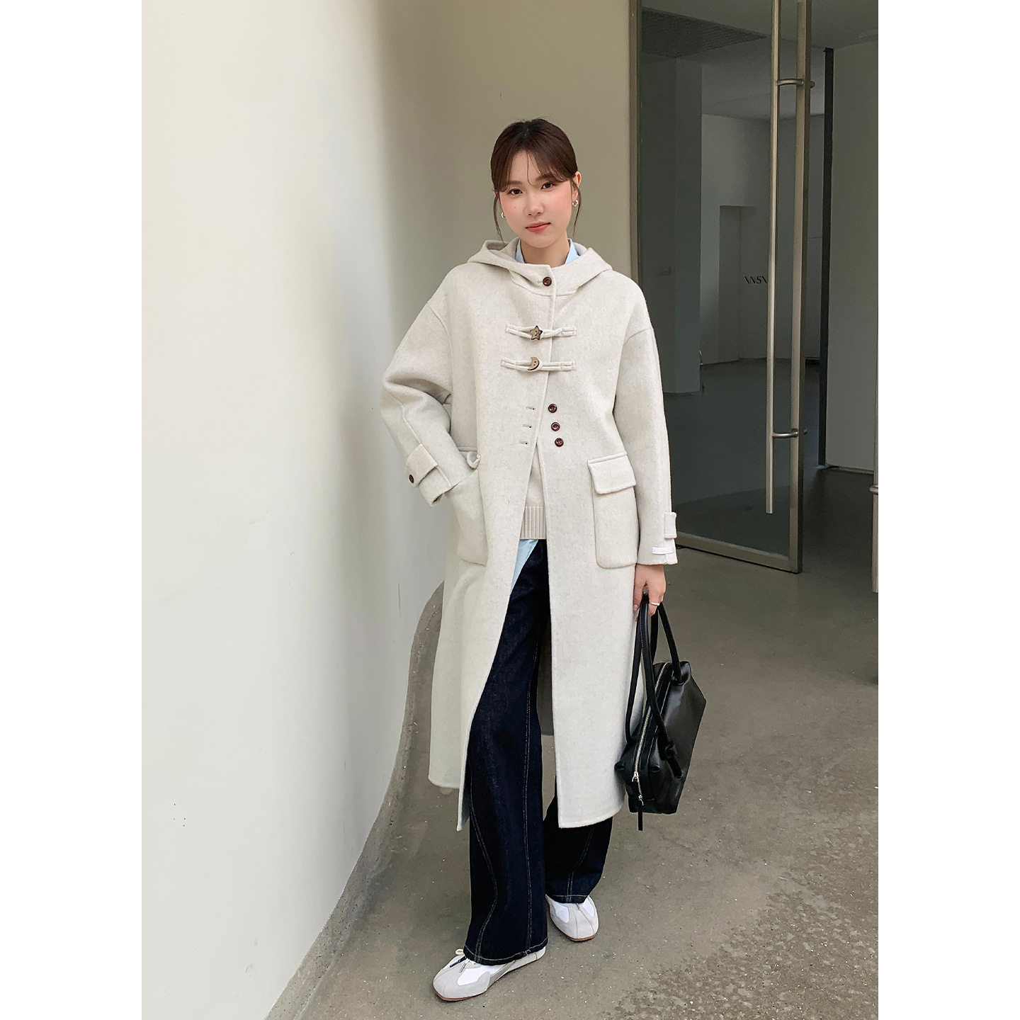 淘宝Tania工作室,连帽羊毛双面呢外套厚实长款大衣