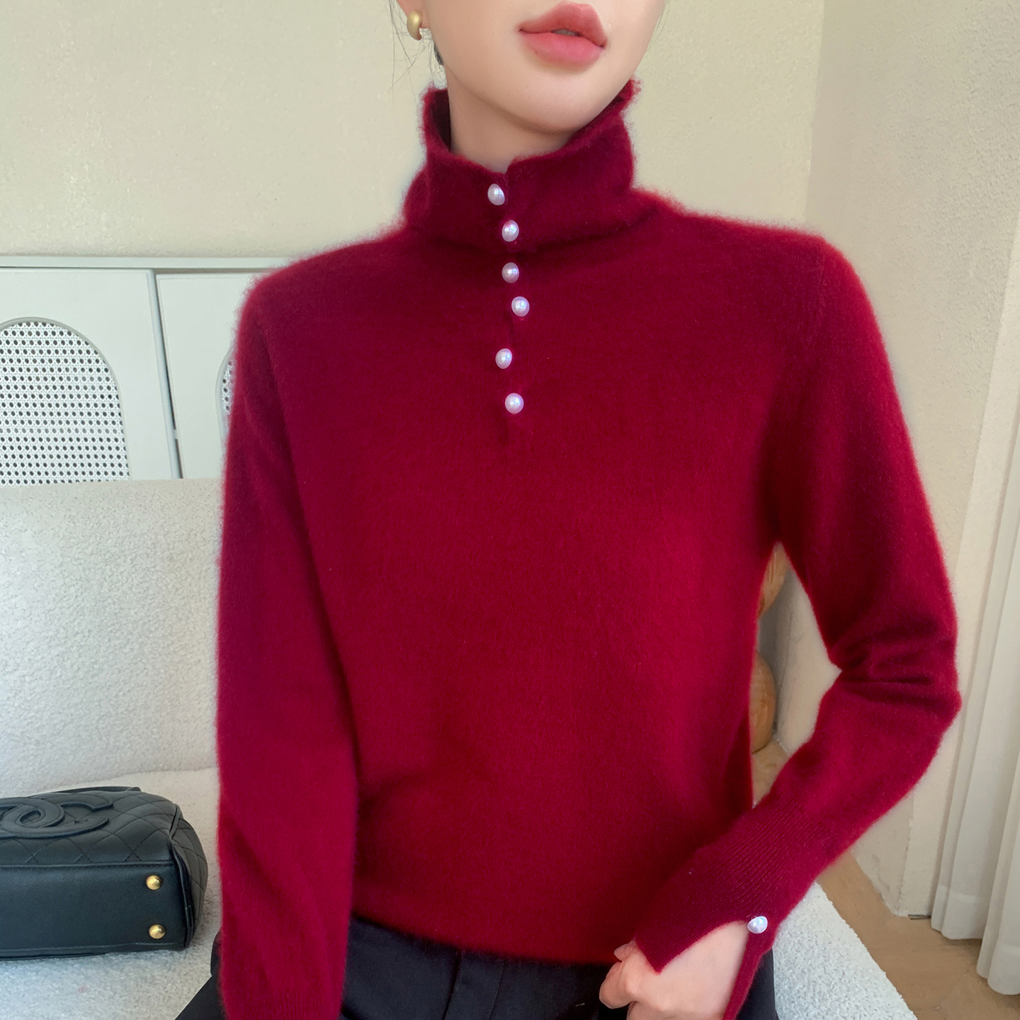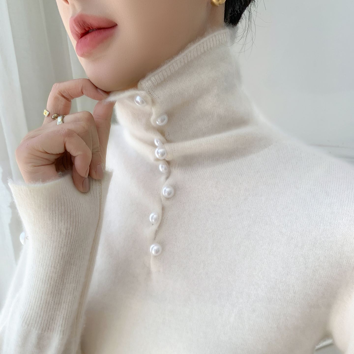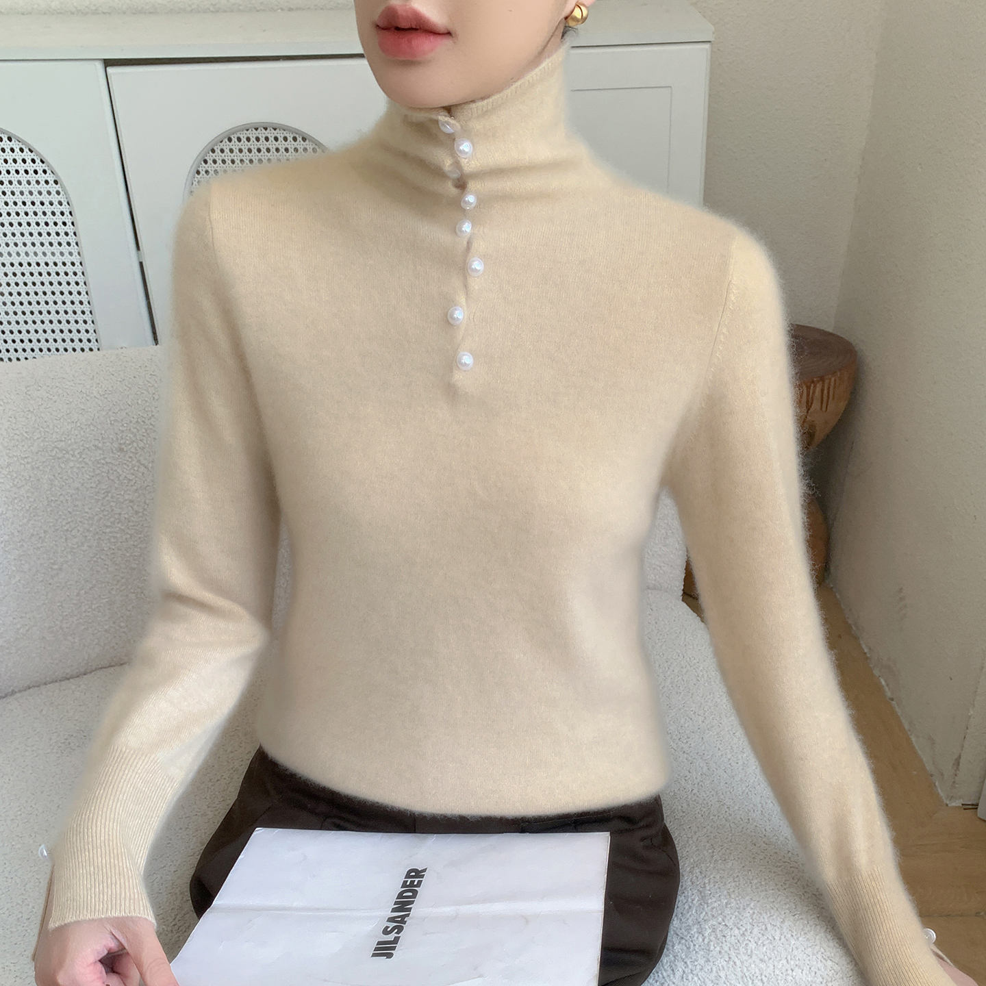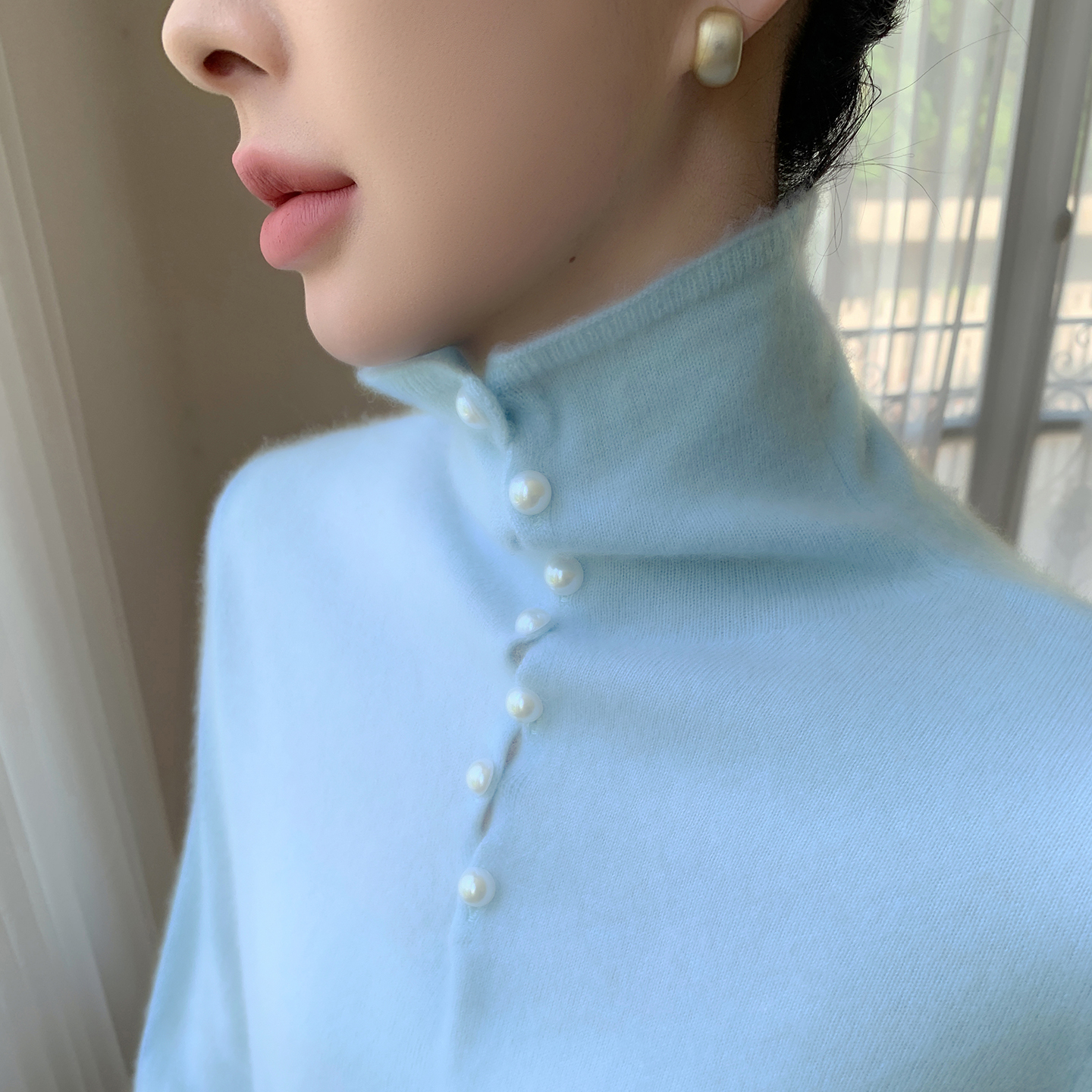 淘宝梦茜韵高端羊绒衫工厂直销店,高级感轻奢山羊绒衫女高领珍珠扣