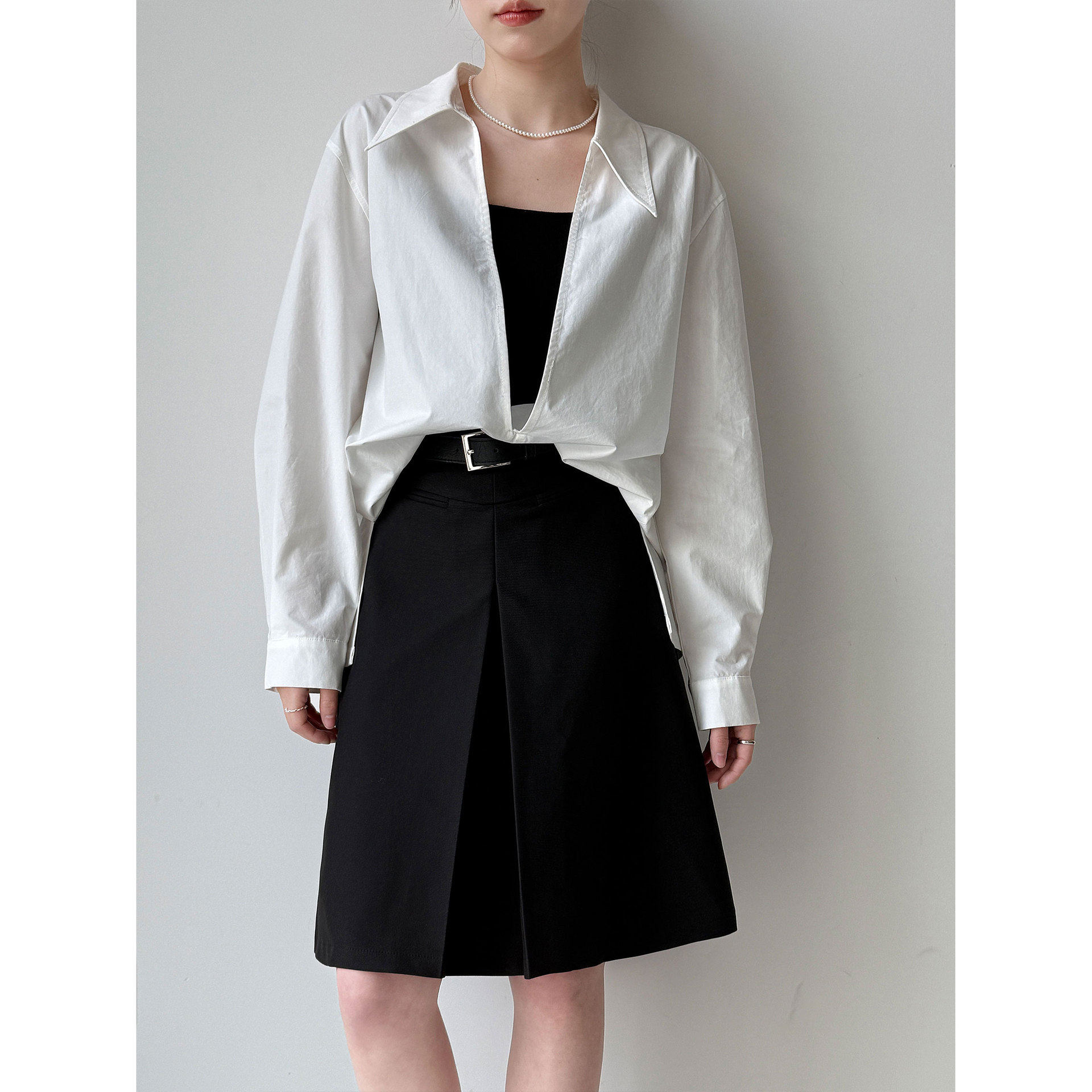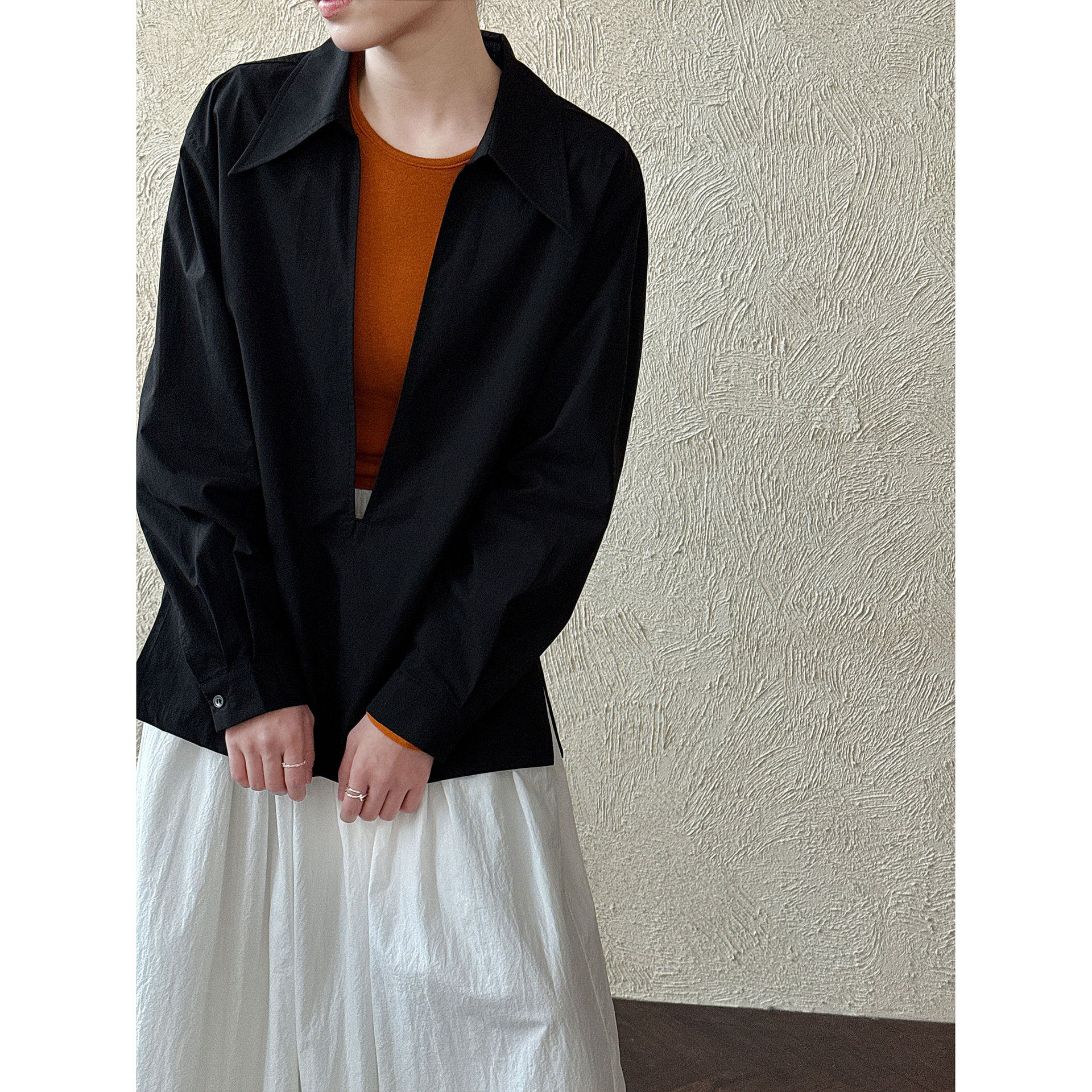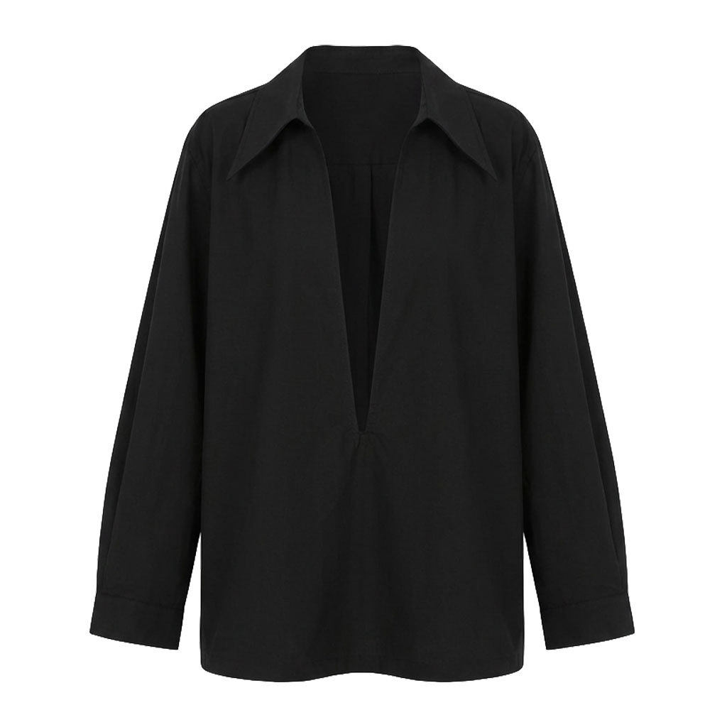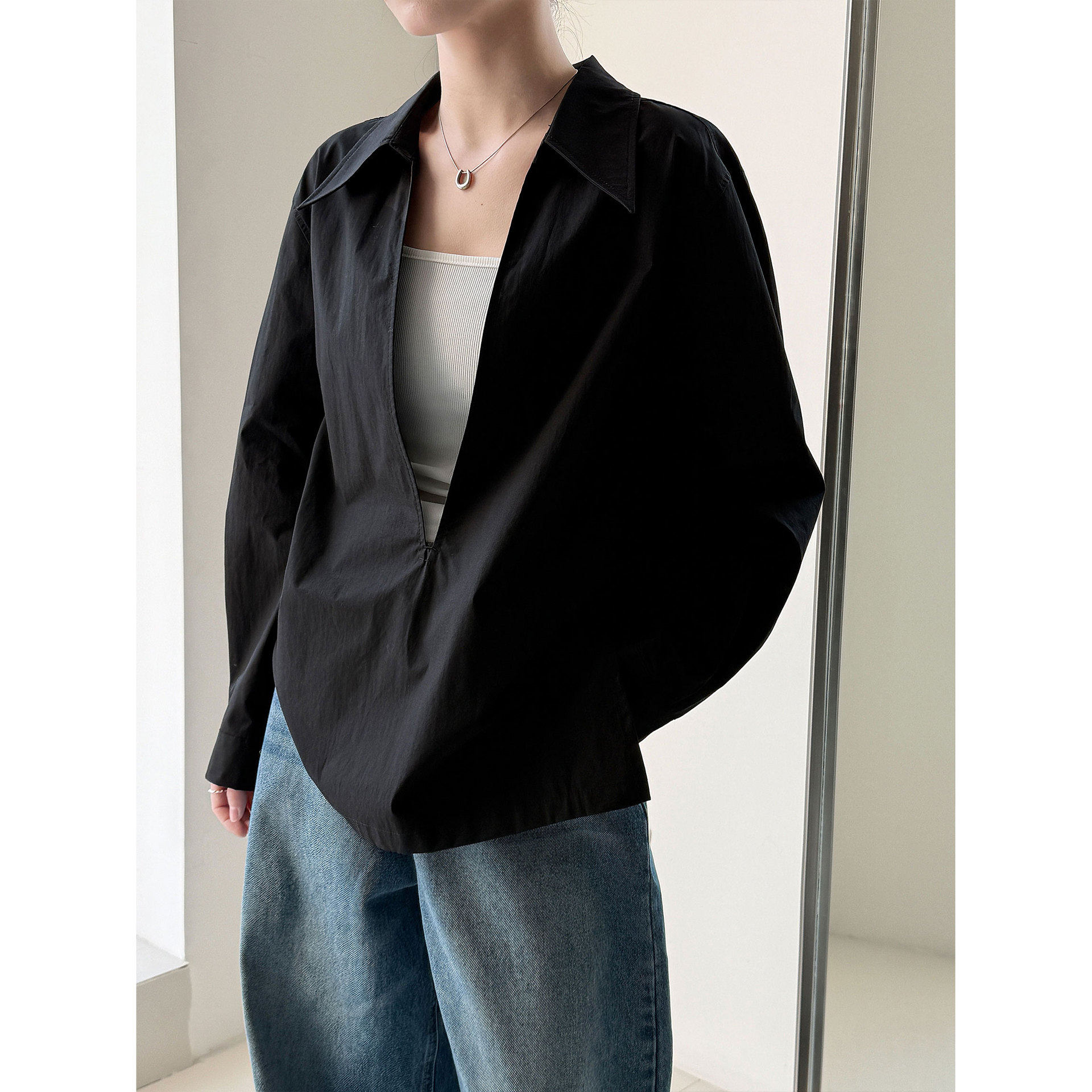淘宝珍珍女装L,鹿西 设计感大v领宽松休闲长袖衬衫女早春新款叠穿法式上衣3766