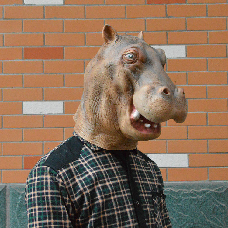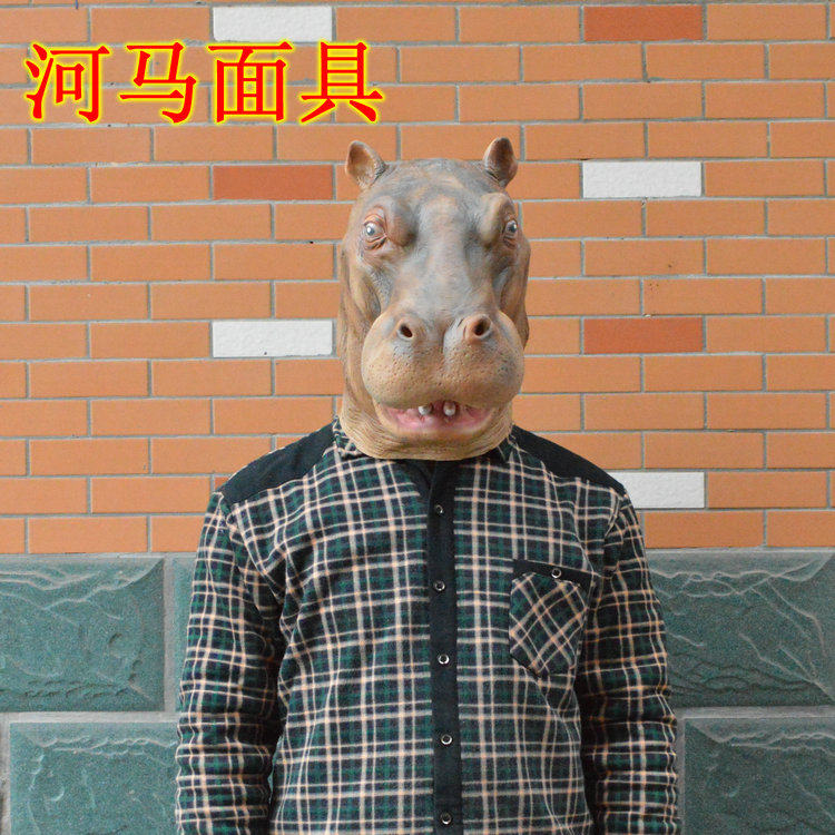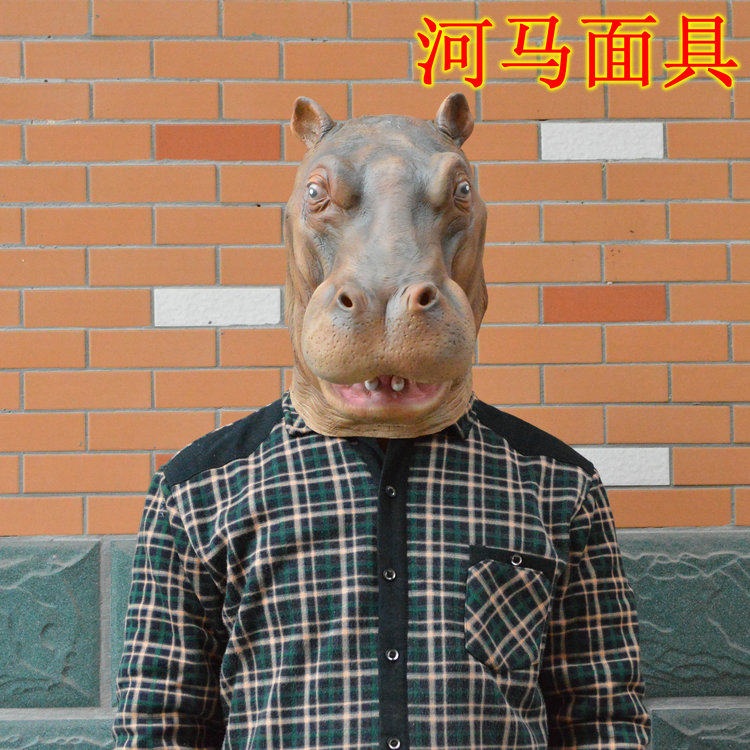 五娃争福 万圣节河马面具罩 cosplay化妆舞会动物面具头套 演出